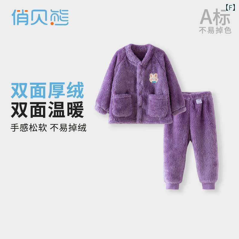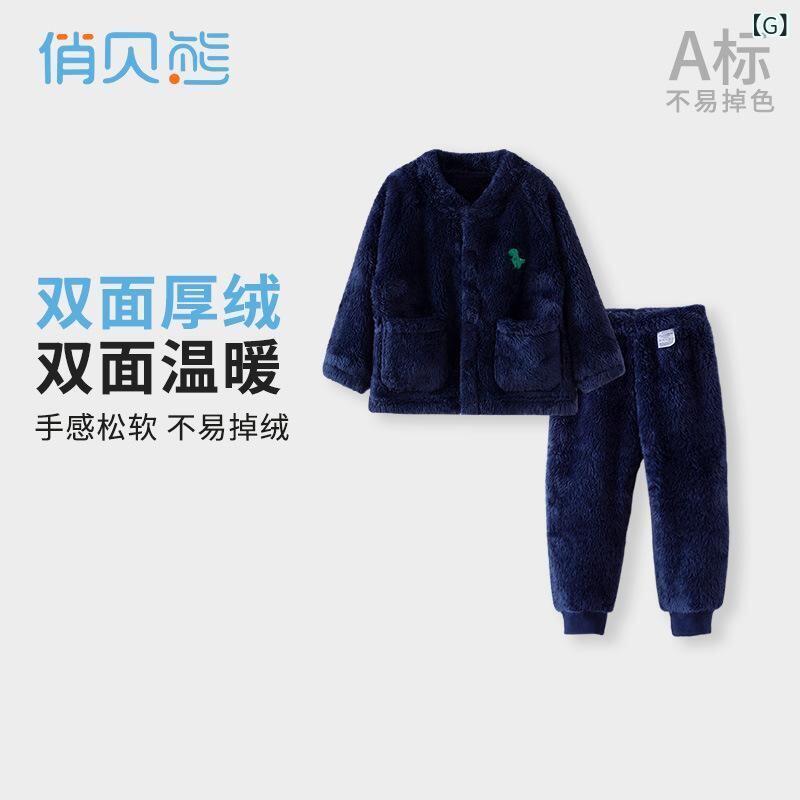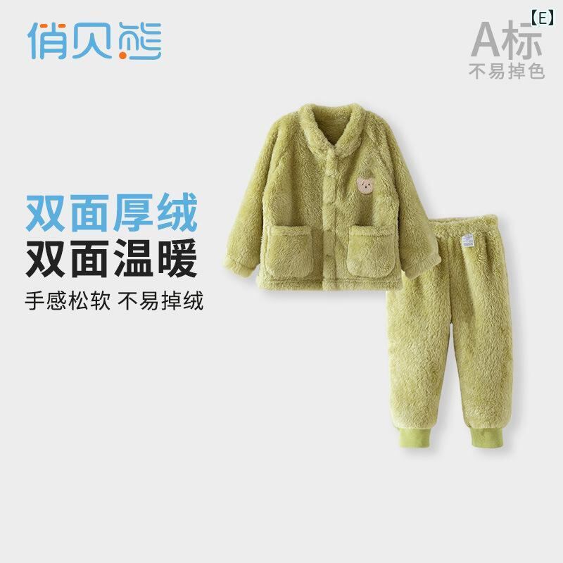 子供用パジャマ 上下セット フランネル ルームウェア 男の子 女の子 暖かい 防寒 厚手 秋冬 緑 紫 紺 ベージュ