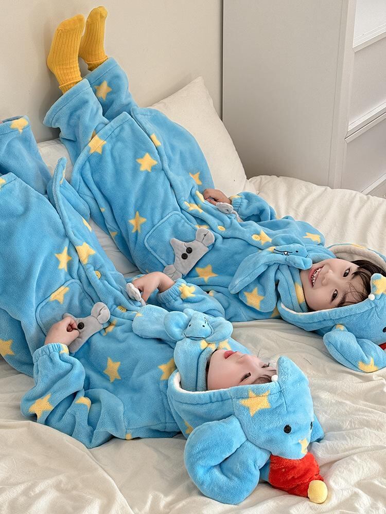 子供用パジャマ 秋冬 厚手 フランネル 象柄 星柄 上下セット 暖か 幼児 ルームウェア 110cm 120cm 130cm 140cm 150cm かわいい