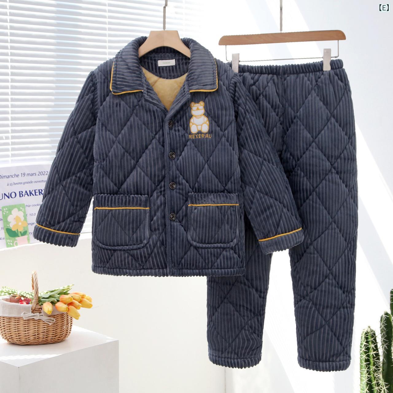子供用パジャマ キッズ 男の子 フランネル あったか 厚手 秋冬 ストライプ柄 部屋着 寝巻き 上下セット 保温性 快適 普段使い