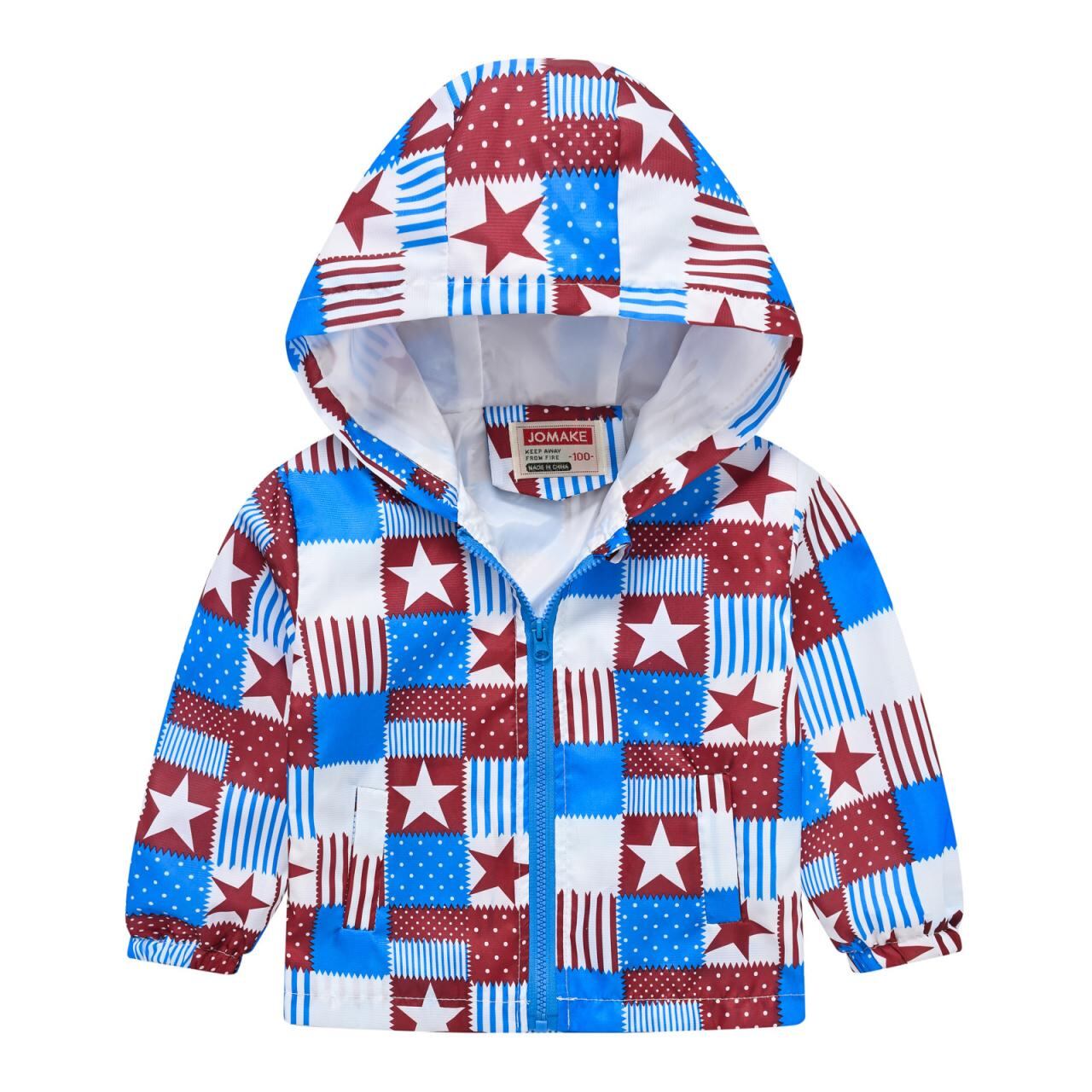 キッズ 子供用 アウター ジャケット 春秋 薄手 韓国風 カジュアル プリント フード付き 幼稚園 保育園 男の子 女の子 恐竜 アニマル 迷彩 星 花柄 総柄 ポリエステル