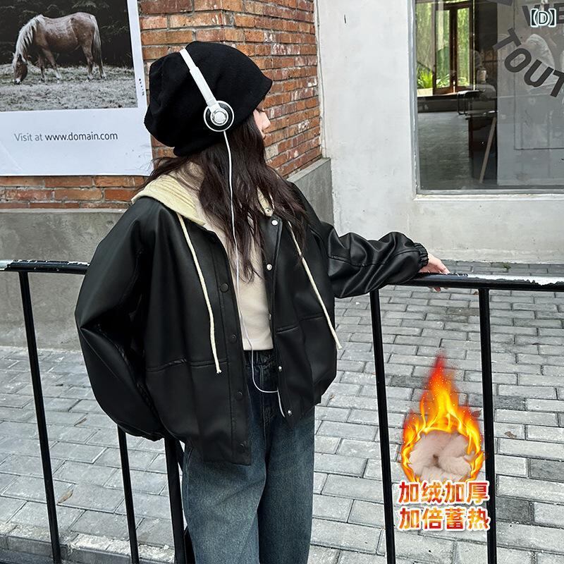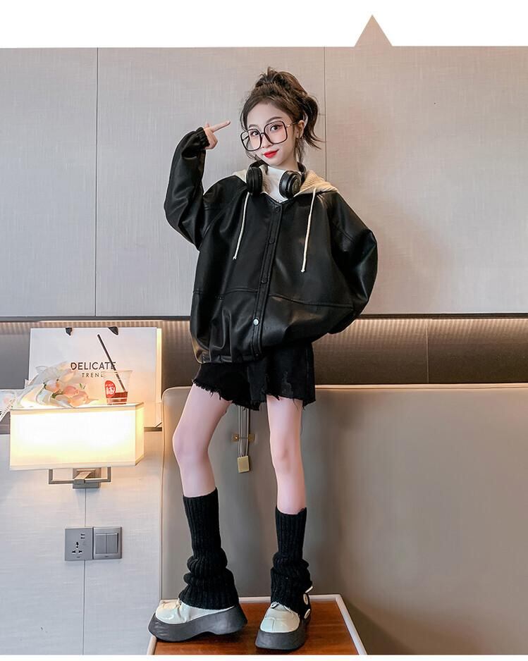 子供服 ジャケット ガールズ アウター 春秋 PUレザー 裏起毛 中厚手 長袖 無地 韓国風 ブラック ブラウン 120cm 130cm 140cm 150cm 160cm 170cm