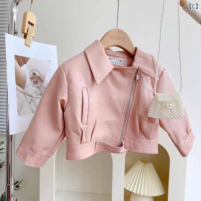 ジャケット キッズ 女の子 ライダースジャケット 春秋 子供服 韓国風 アウター ベビー服 かわいい 普段使い おしゃれ ブラック ピンク系 ブラウン 90 100 110 120 130 140