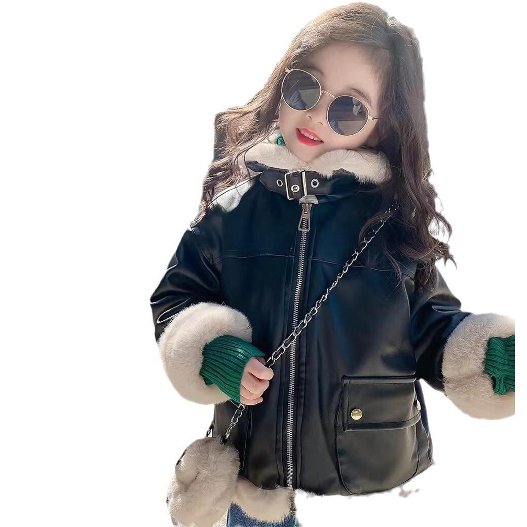 子供服 アウター ジャケット 秋冬 女の子 裏起毛 PUレザー ブラック 中長丈 普段使い かわいい 潮范