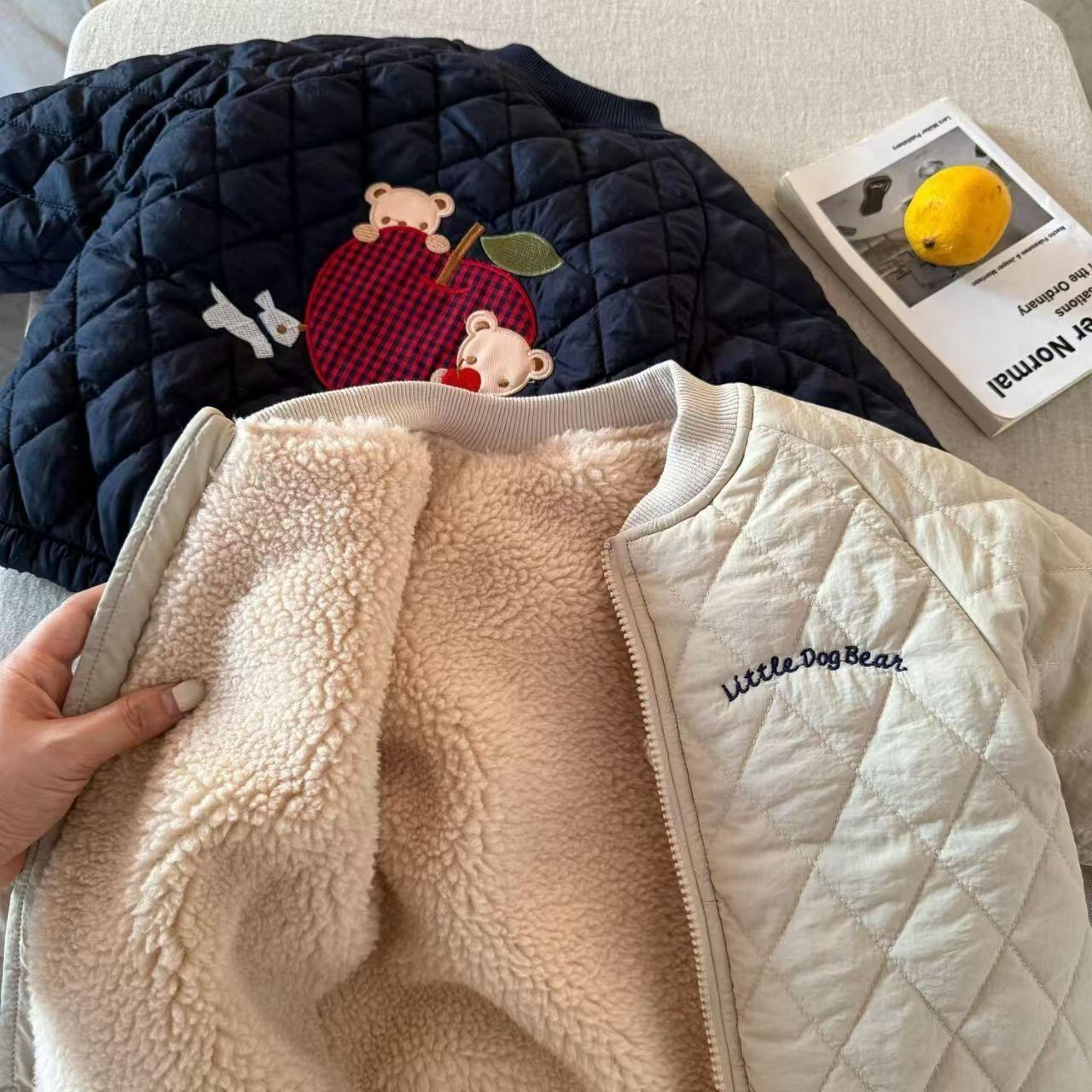 子供服 ジャケット 男女兼用 裏起毛 アウター 冬 中綿 コート 刺繡 クマ柄 襟付き 90cm 100cm 110cm 120cm 130cm 140cm かわいい 普段使い 防寒 あったか