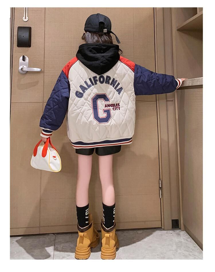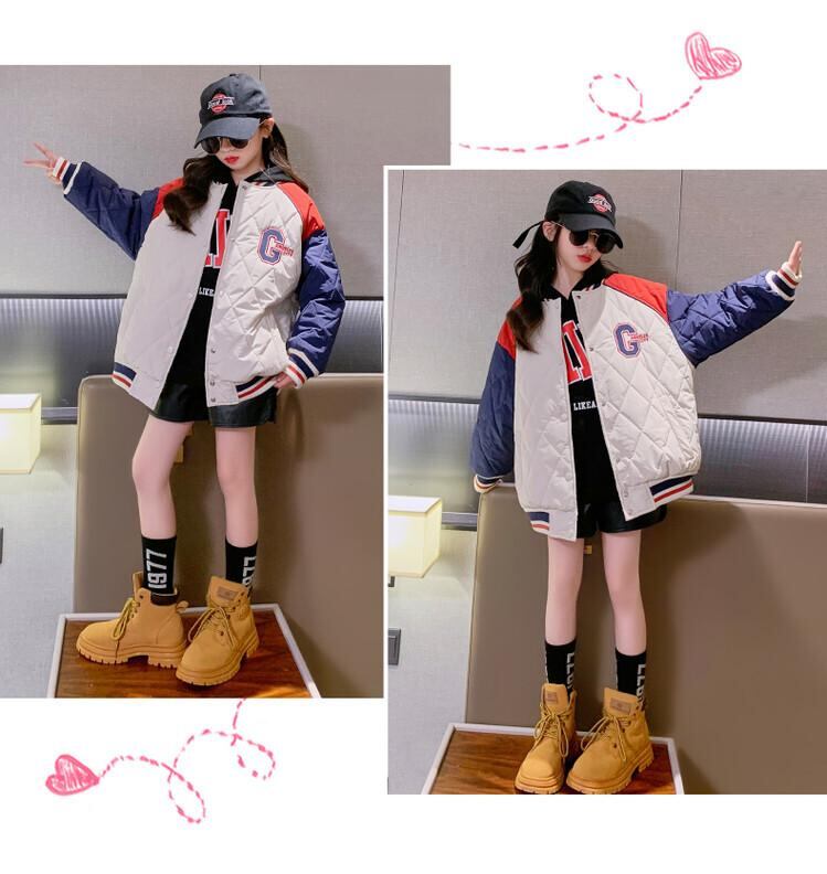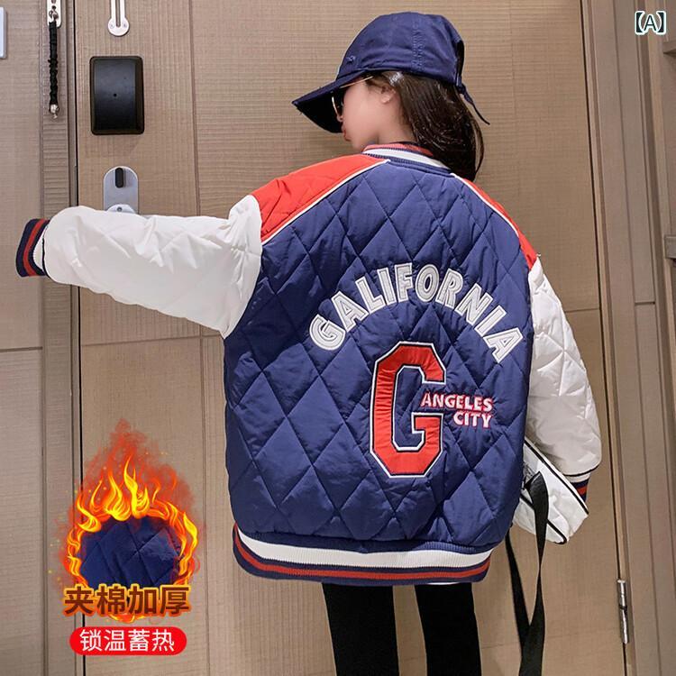 子供用ジャケット 女の子用野球ジャケット 秋冬 子供服 中学生 高校生 韓国風 コットン 厚手 Vネック アウター 普段使い 部屋着 120 130 140 150 160 170 紺色 ベージュ