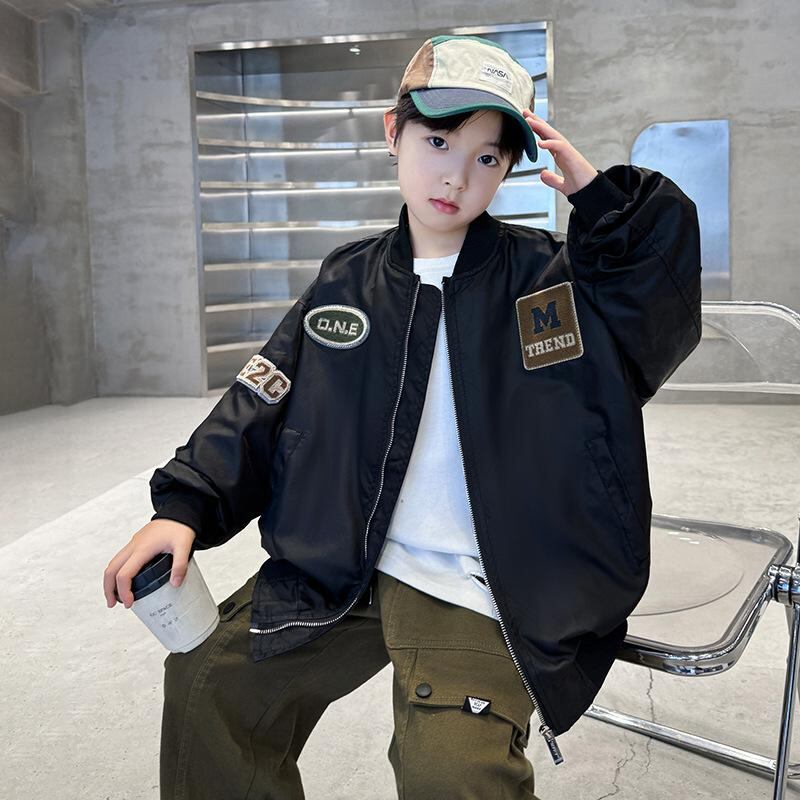 キッズ 男の子 ジャケット 春秋 ブルゾン ジャンパー アウター ボーイズ 子供服 トップス 長袖 無地 ワークスタイル スポーティー カジュアル ブラック ベージュ