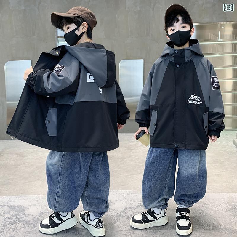 子供用 ジャケット 春秋 中大 キッズ ボーイズ アウター ジャンパー フード付き ウインドブレーカー スポーティー カジュアル 長袖 120 130 140 150 160 170