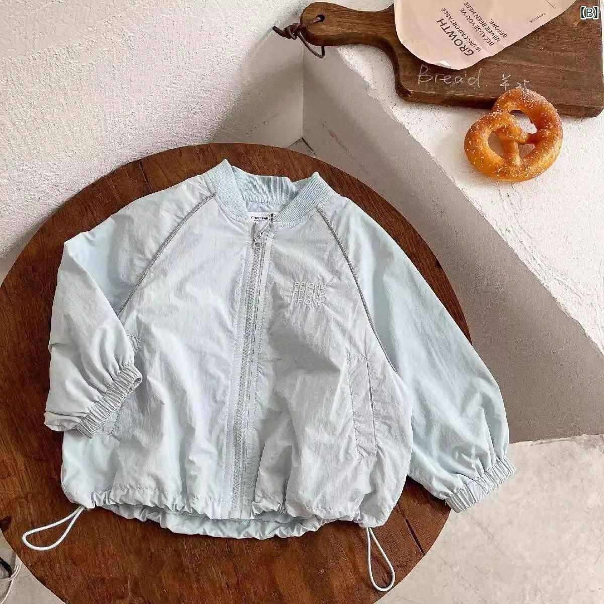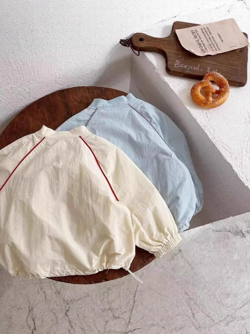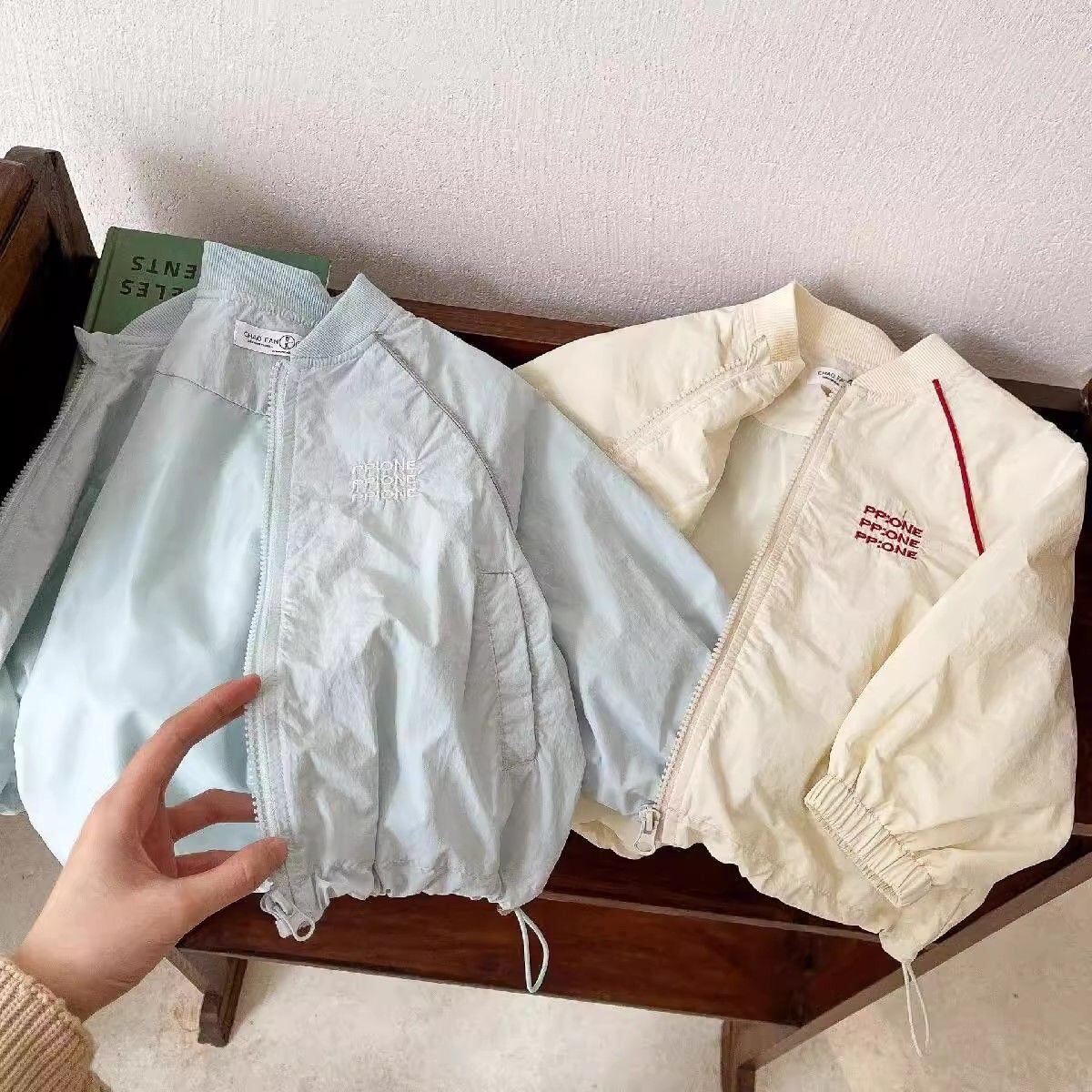 子供服 ジャケット 春秋 男の子 女の子 アウター スタンドカラー 刺繍 薄手 長袖 スポーツ 普段使い ポリエステル ホワイト 白 ライトブルー 水色