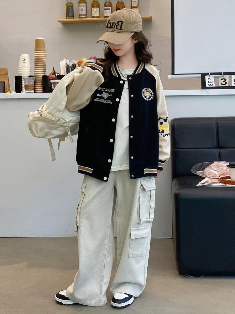 ジャケット キッズ 女の子 春秋 ブルゾン ジャンパー 子供服 大童 配色 おしゃれ かわいい スポーティー カジュアル スプリングコート アウター 120 130 140 150 160 170