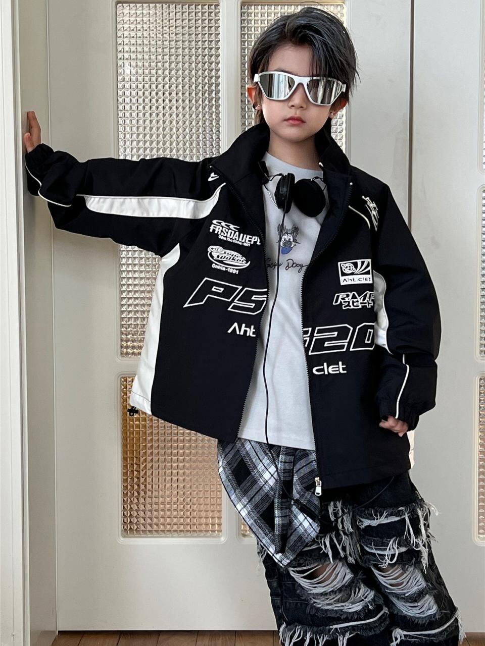 子供服 アウター 男女兼用 韓国風 刺繍入り ジャケット ブルゾン デニム 綿 秋