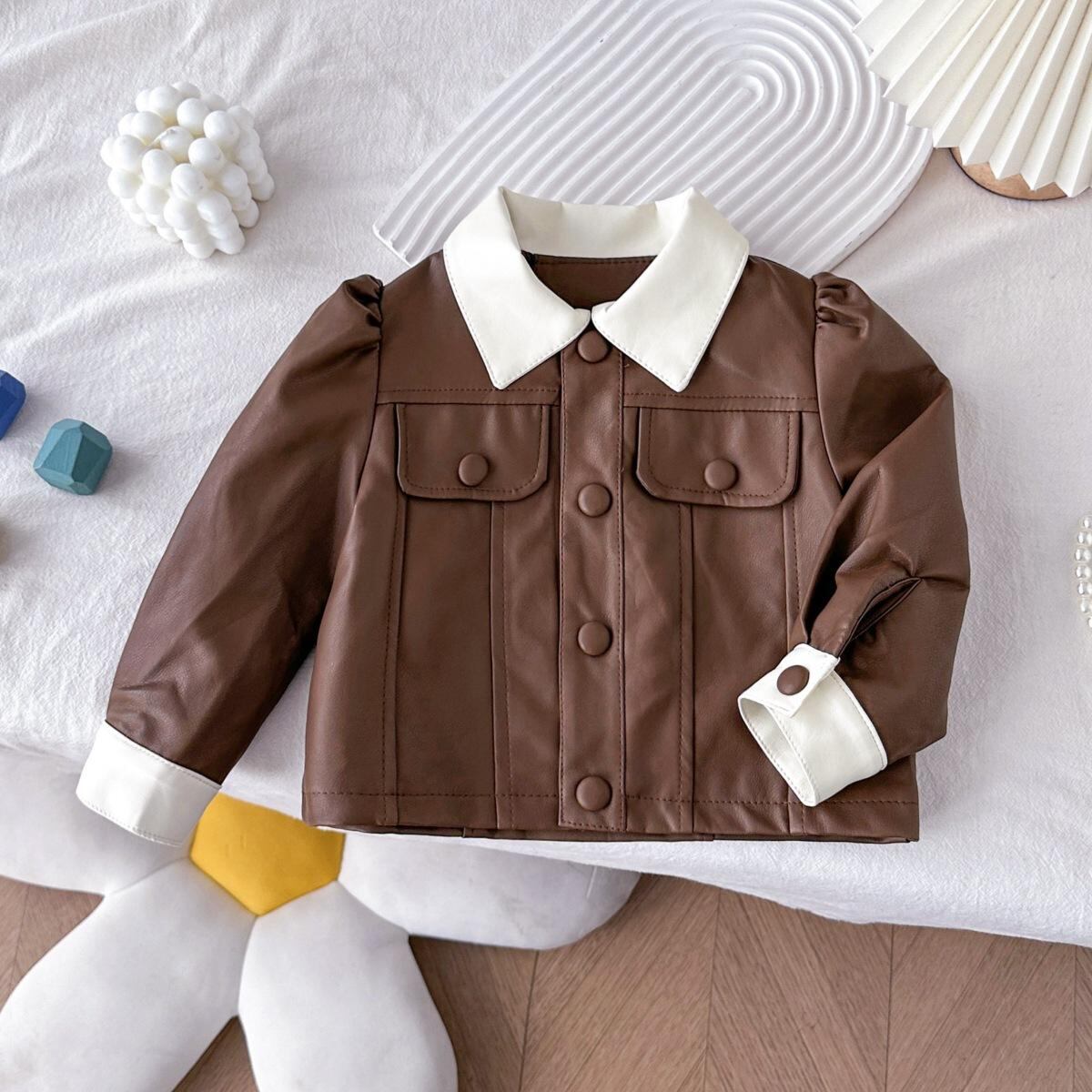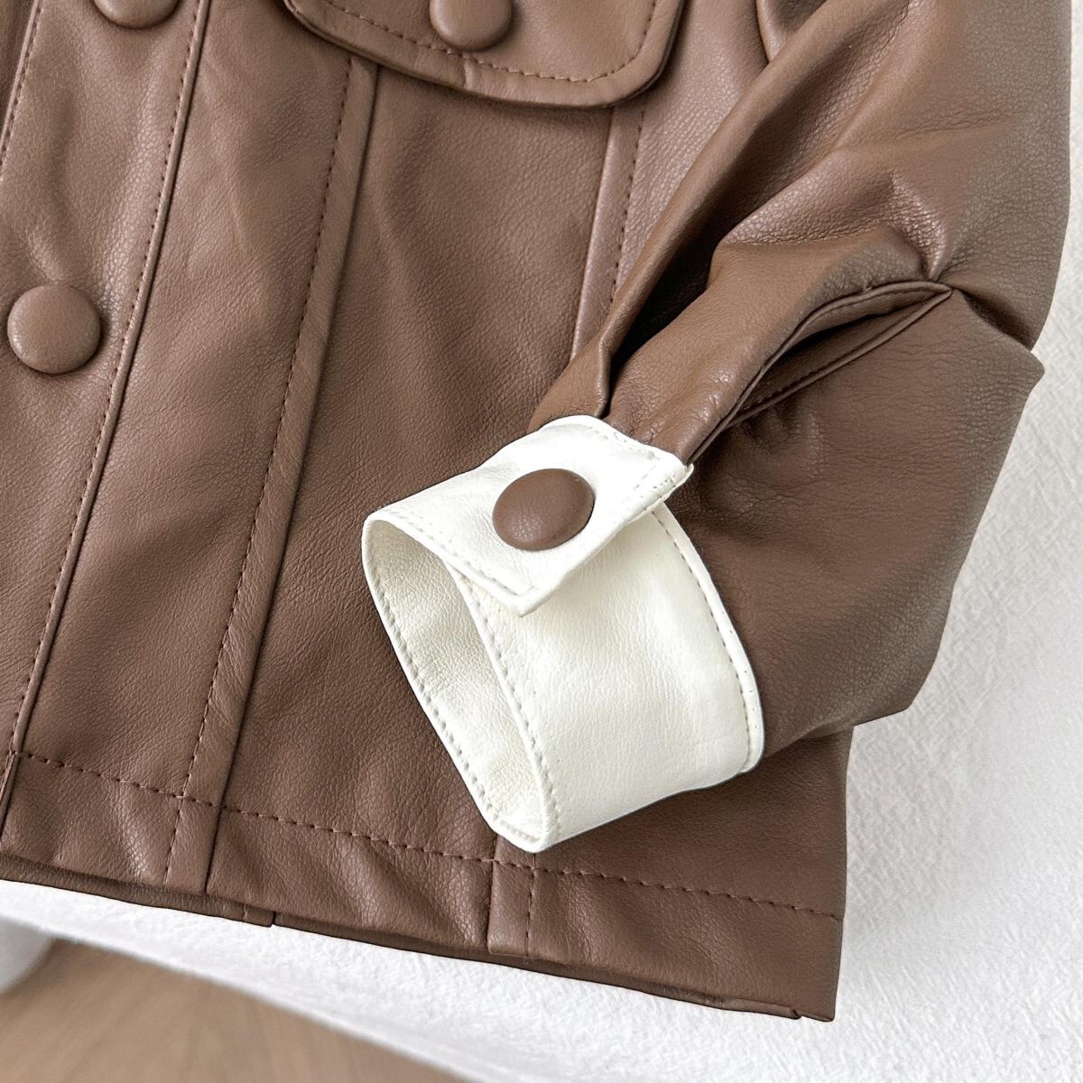 子供服 ジャケット 女の子 PUレザー アウター 春秋 翻襟 ショート丈 トップス 普段着 かわいい おしゃれ ポリエステル