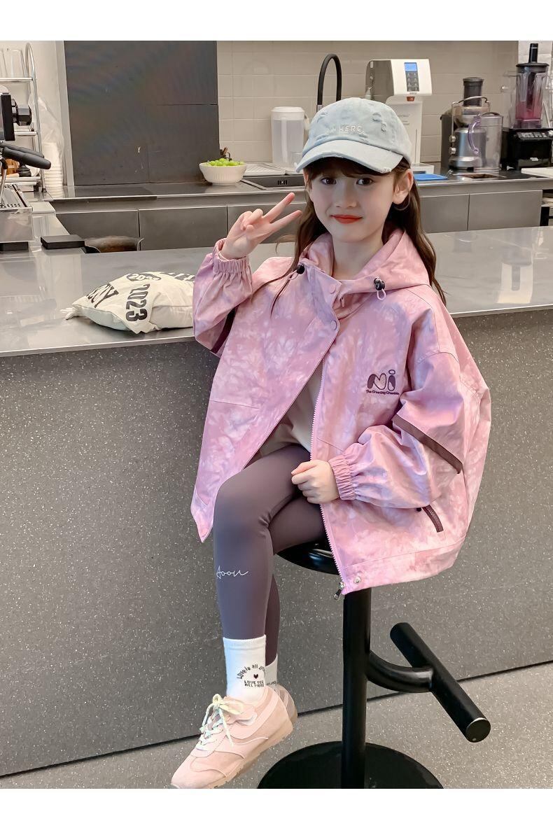 子供服 ジャケット 女の子 薄手ジャンパー スポーツ アウター 春秋 ラウンドネック かわいい 迷彩柄 ポリエステル ピンク系 120cm 130cm 140cm 150cm 160cm 170cm