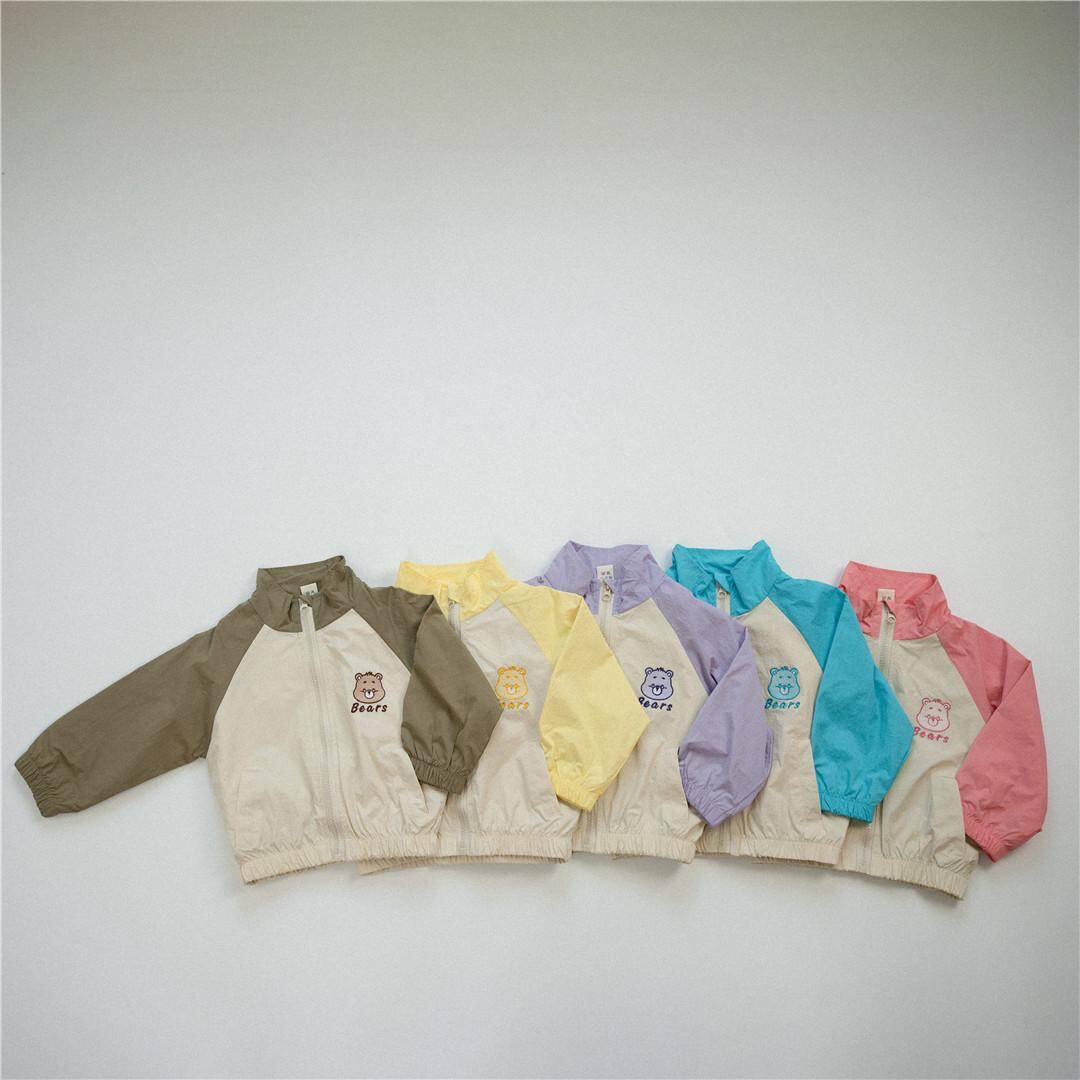 子供服 ジャケット 春秋 男女兼用 刺繡 小熊 アップリケ ジップアップ アウター 長袖 トップス 韓国風 かわいい 幼稚園 保育園 通園 普段着 男の子 女の子 イエロー ピンク系