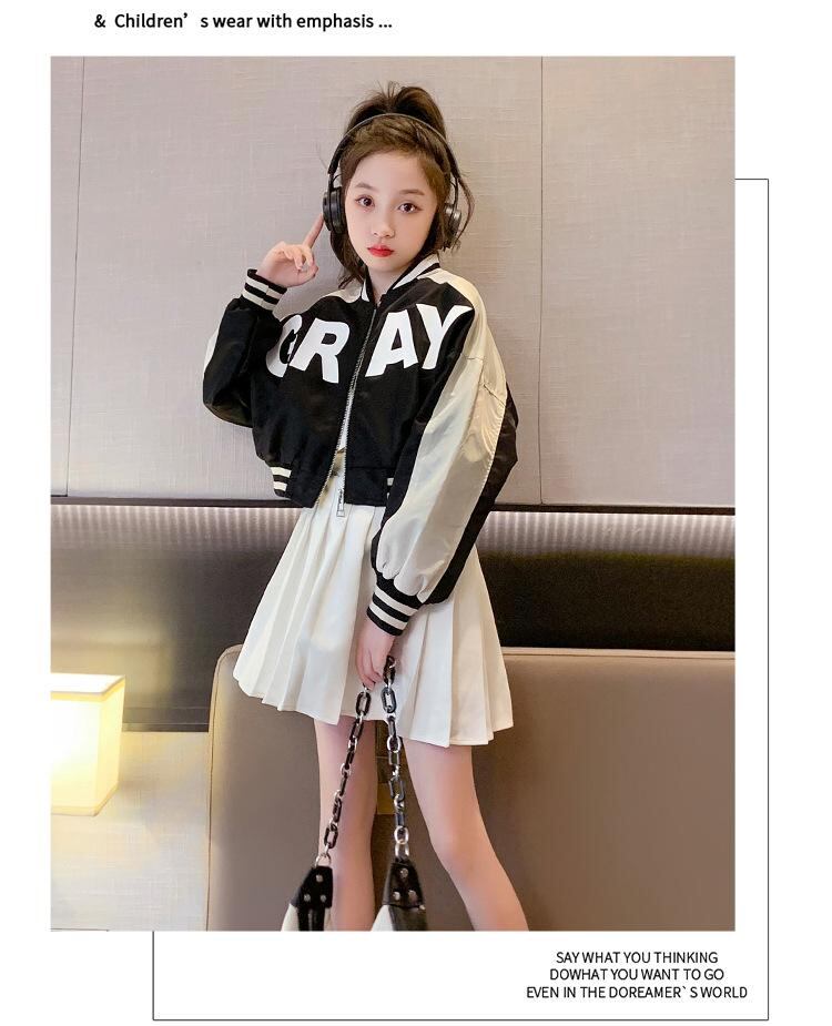 子供服 ジャケット 女の子 秋物 ブルゾン ジャンパー アウター 通学 普段使い スポーツ 運動着 ポリエステル ブラック 黒色 アイボリー