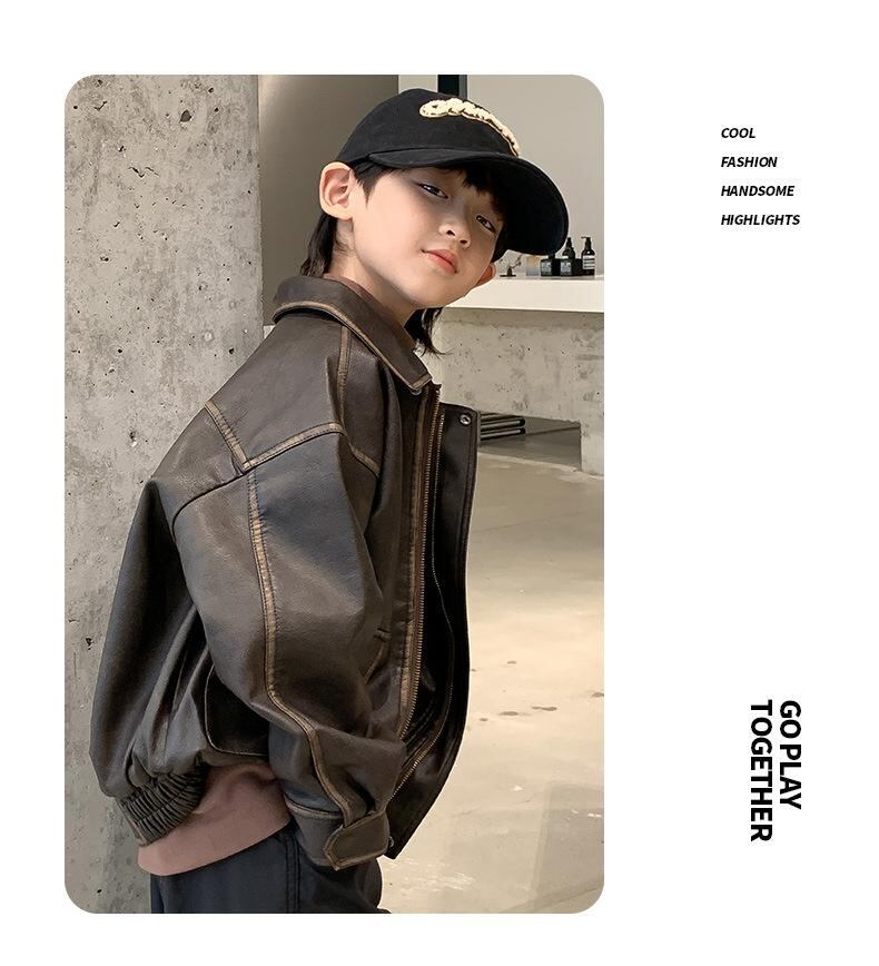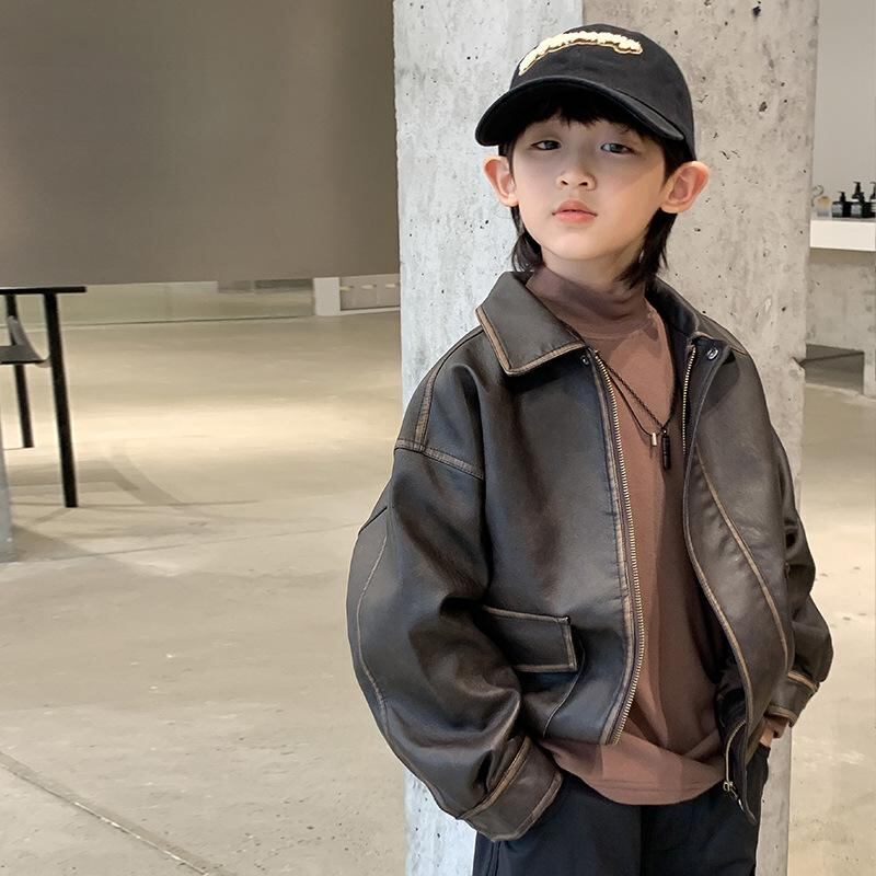 子供服 ジャケット 男の子 PUレザー ブルゾン アウター 接触冷感 無地 ボーイズ 子供 キッズ ジュニア 普段使い 140 150 160 170