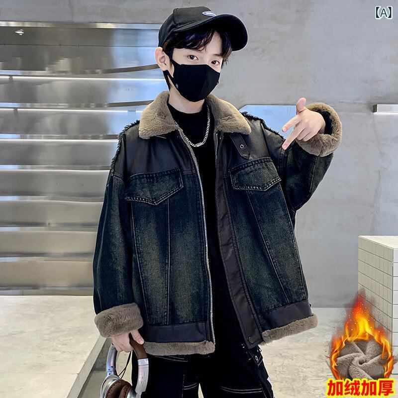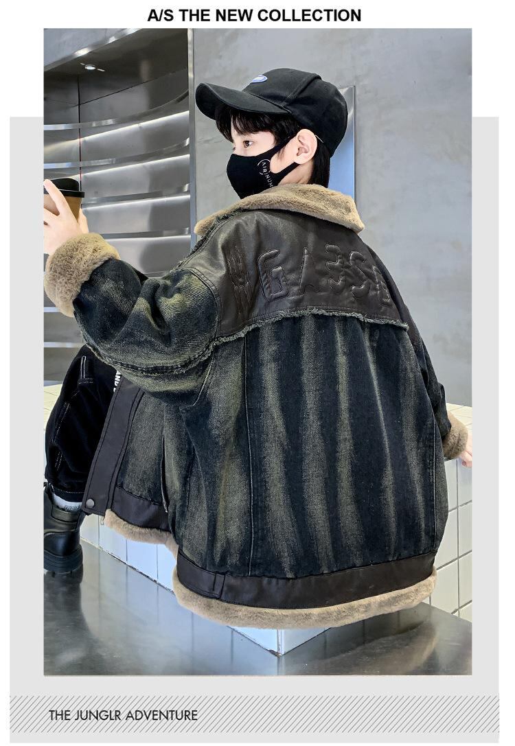子供服 ジャケット 男の子 裏起毛 デニム アウター 秋冬 中学生 高学年 切り替え カジュアル 防寒