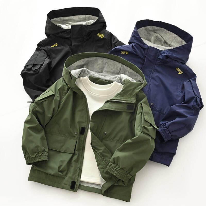 子供服 ジャケット ニット裏地 男の子 フード付き ウィンドブレーカー ブルゾン トップス 春秋 スポーツ 普段使い ブラック グリーン ネイビー
