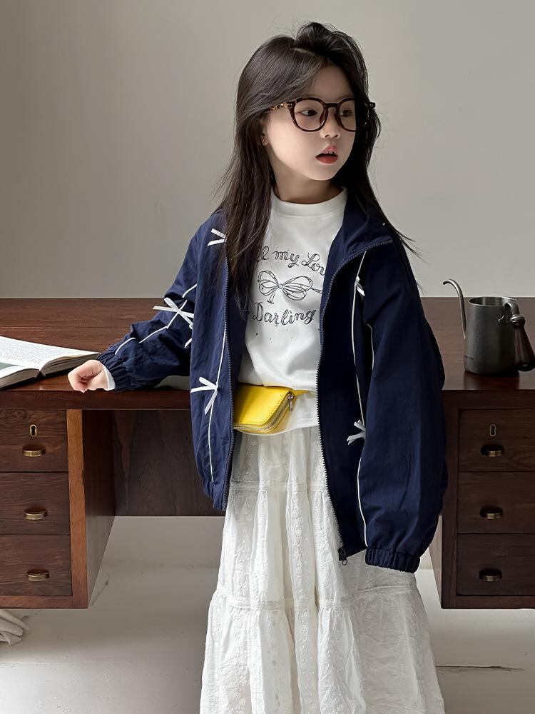 子供服 ジャケット ガールズ 春秋 アウター 女の子 秋物 上着 ジャンパー 8歳以上 中大童 120cm 130cm 140cm 150cm 160cm 170cm 蝶結び ポリエステル