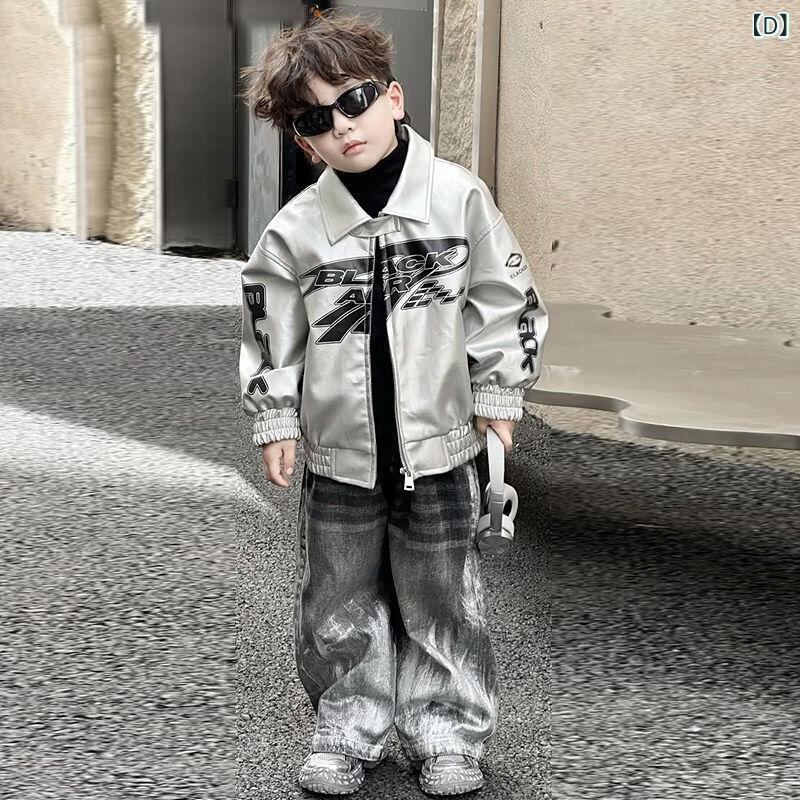 子供服 ジャケット 男の子 ライダースジャケット 韓国風 アウター トップス 春秋 おしゃれ かわいい 綿 シルバー 銀色 黒色 ブラック デニム ジーンズ 90 100 110 120 130 140