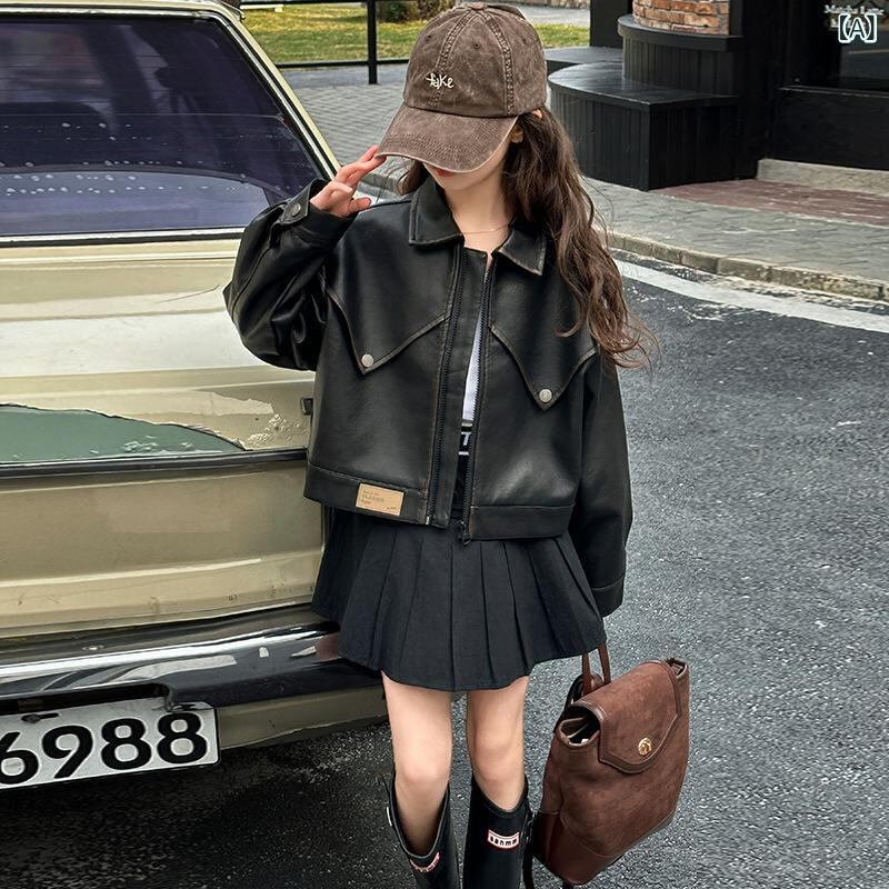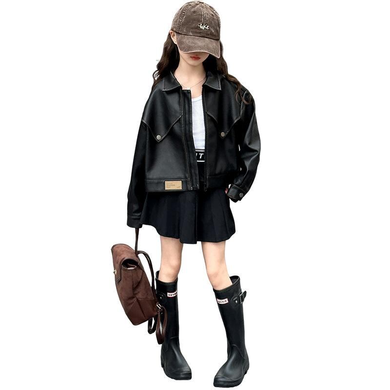 子供服 ジャケット 女の子 PUレザージャケット 春秋 ショート丈 韓国風 かわいい おしゃれ ライダースジャケット ガールズ アウター トップス 長袖 カジュアル ブラック ブラウン 120cm 130cm 140cm 150cm 160cm 170c