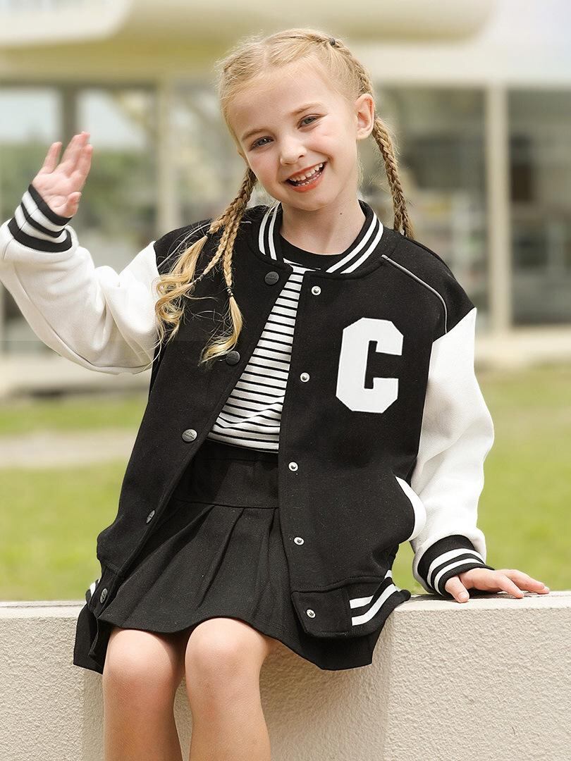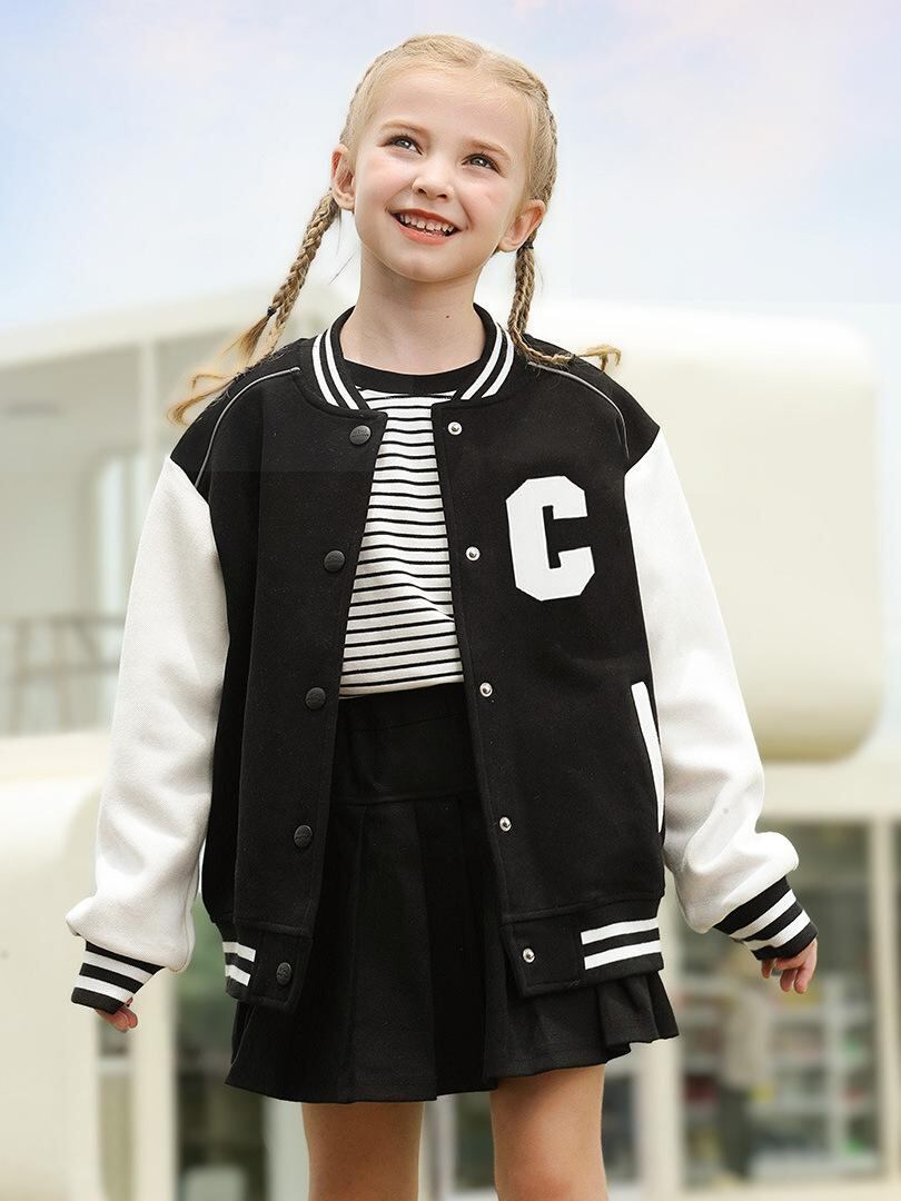 子供服 ジャケット 男女兼用 春秋 Vネック カジュアル 野球服 ジャンパー ブルゾン アウター トップス 8歳以上 ブラック ピンク系 110cm 120cm 130cm 140cm 150cm 160cm