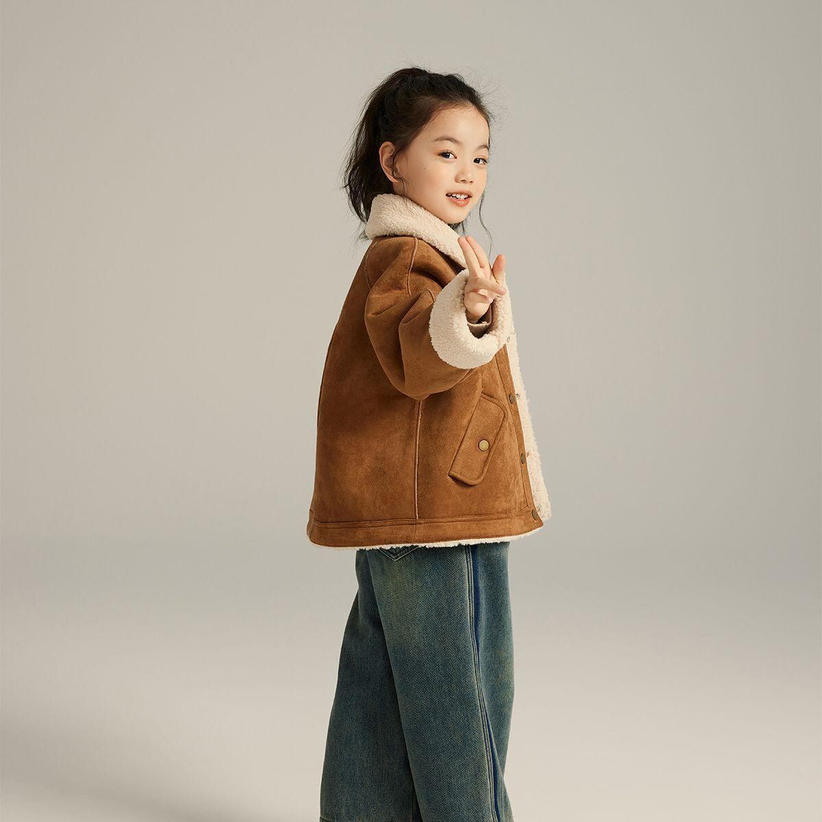 子供服 ジャケット 女の子 秋冬 裏起毛 ボア 厚手 暖かい アウター コート キッズ 子供 上着 防寒 カラメル色