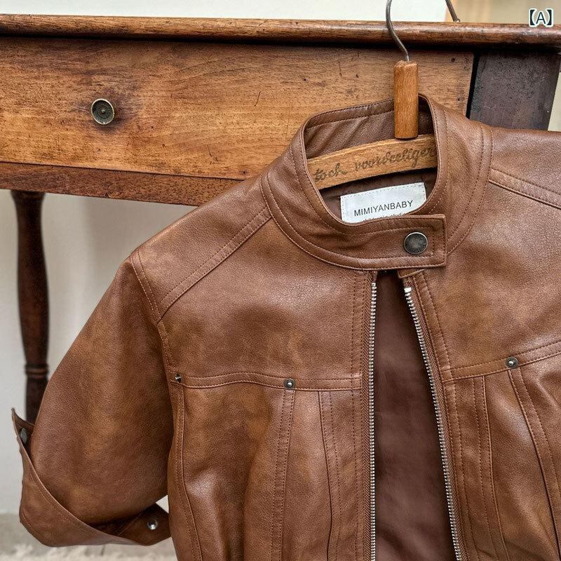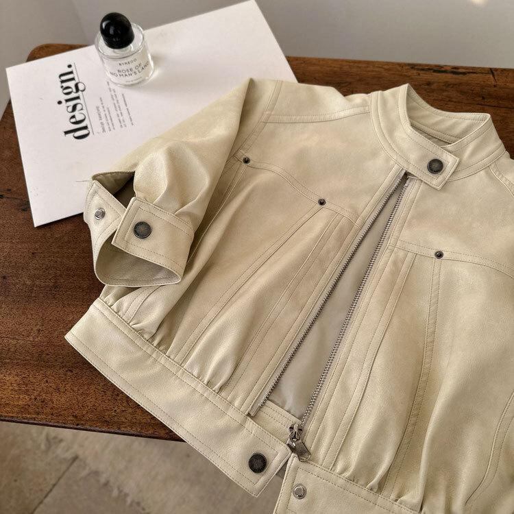 子供服 ジャケット 男女兼用 ベビー服 アウター 春秋 立襟 無地 PU レザージャケット 短め丈 コーヒー色 米白色 90cm 100cm 110cm 120cm 130cm 140cm 普段使い