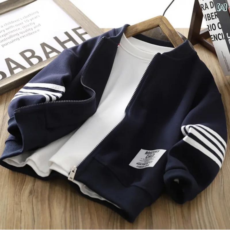 キッズ 男の子 ジャケット 春秋 スポーツウェア ブルゾン ボーイズ 子供服 アウター ストライプ 綿 8歳以上 140cm以上 普段使い 部屋着