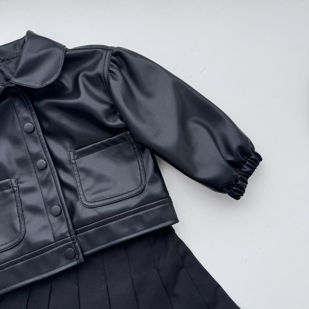 キッズ ジャケット 女の子 アウター 秋冬 子供服 柔らかい襟 ポリエステル 黒 ブラック プリーツスカート かわいい おしゃれ 80cm 90cm 100cm 110cm 120cm 130cm