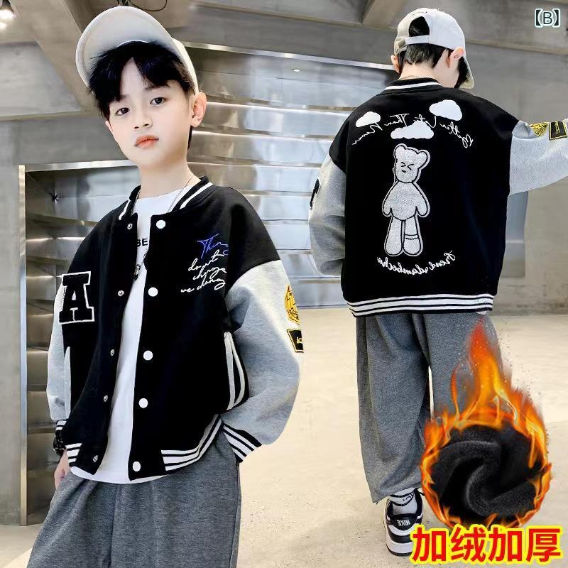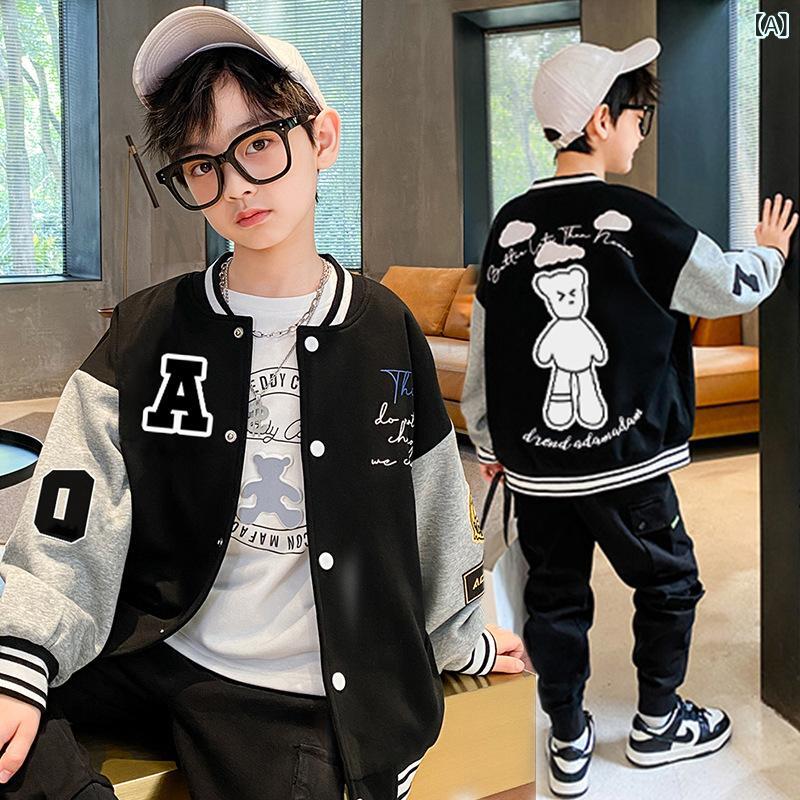子供服 ジャケット 男の子 ベースボールジャケット 裏起毛 中学生 小学生 立襟 プリント アウター 韓国風 普段着 110 120 130 140 150 160