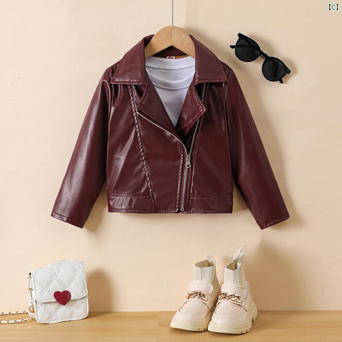 キッズ ジャケット 女の子 アウター 子供服 秋冬 PUレザー 英国風 ライダース 防風 防寒 ブラック レッド ワインレッド