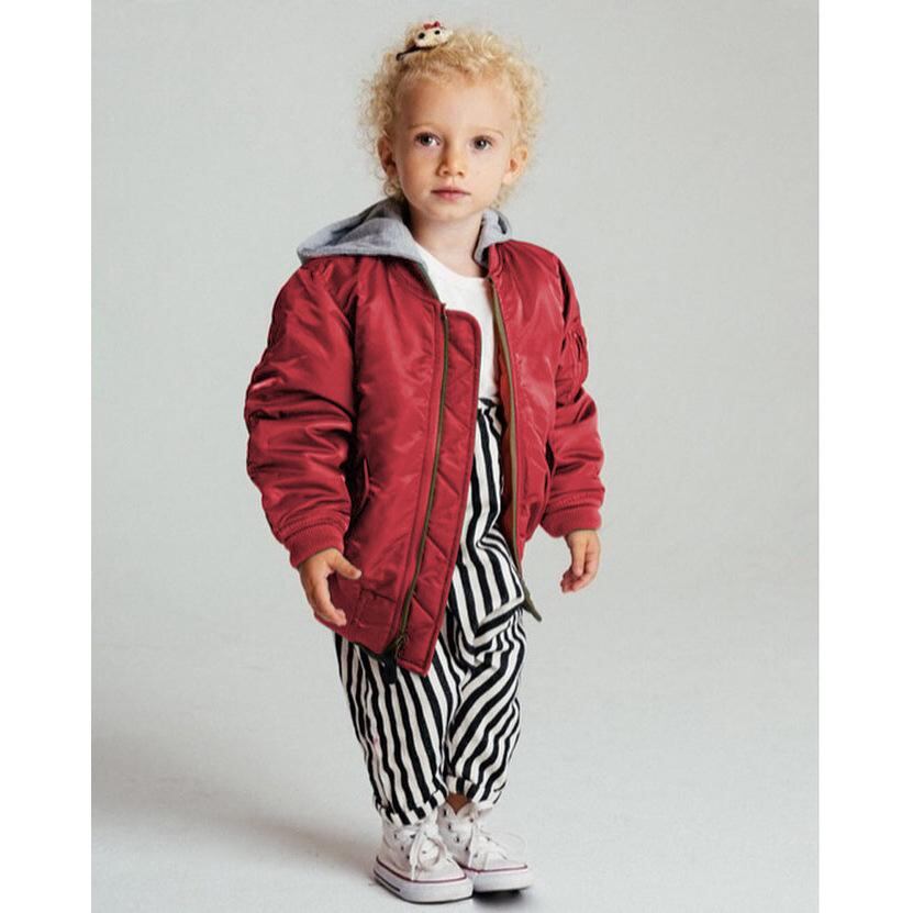 子供服 ジャケット MA-1 秋冬 中綿入り アウター 男の子 女の子 キッズ スタンドカラー 無地 厚手 防寒 あったか 深青色 軍緑色 赤色 黄色