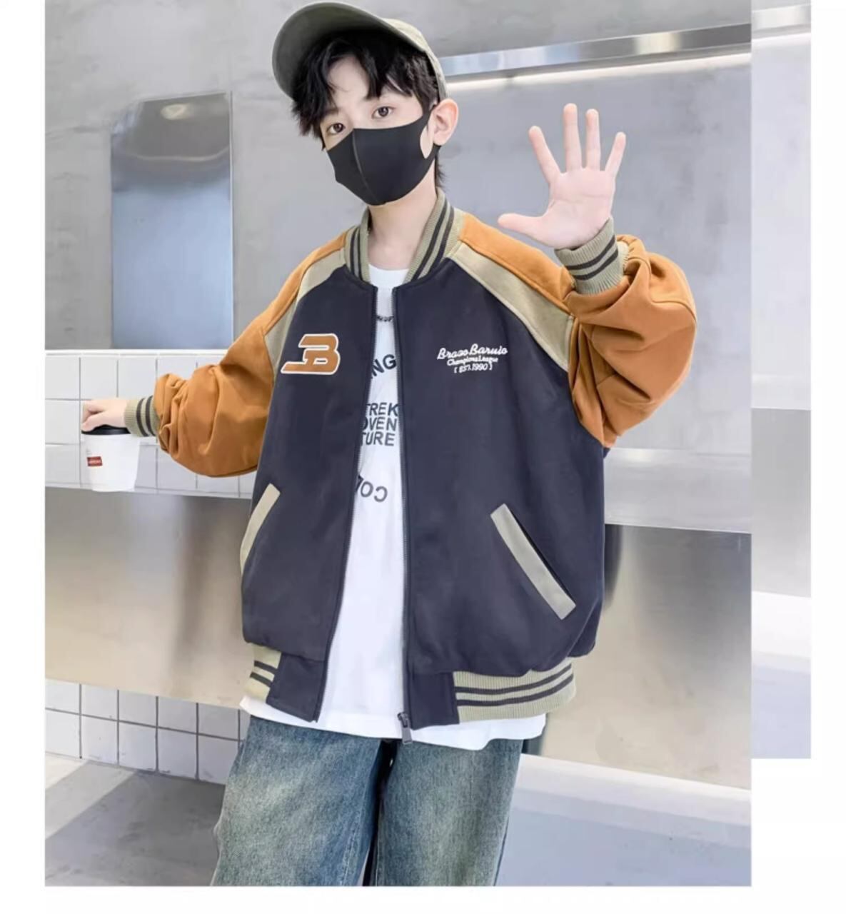 子供服 アウター 男の子用 野球服 秋冬 加厚 防寒 ジャンパー 上着 ボーイズ ウェア 120 130 140 150 160 170 深灰色