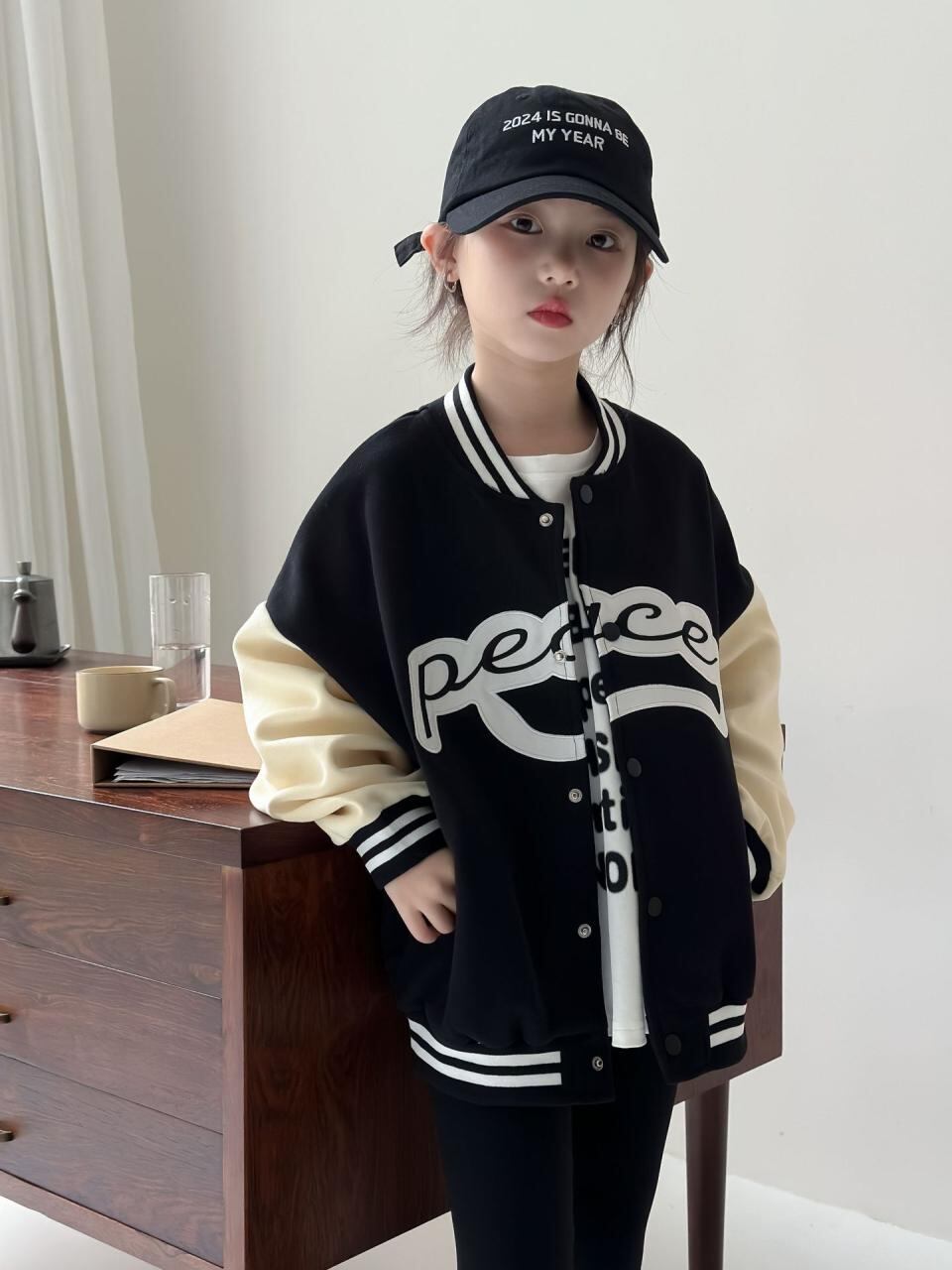 子供服 ジャケット キッズ 男女兼用 刺繡 野球服 ブルゾン アウター スポーティ カジュアル 綿 春秋 黒 ブラック ズボン パンツ