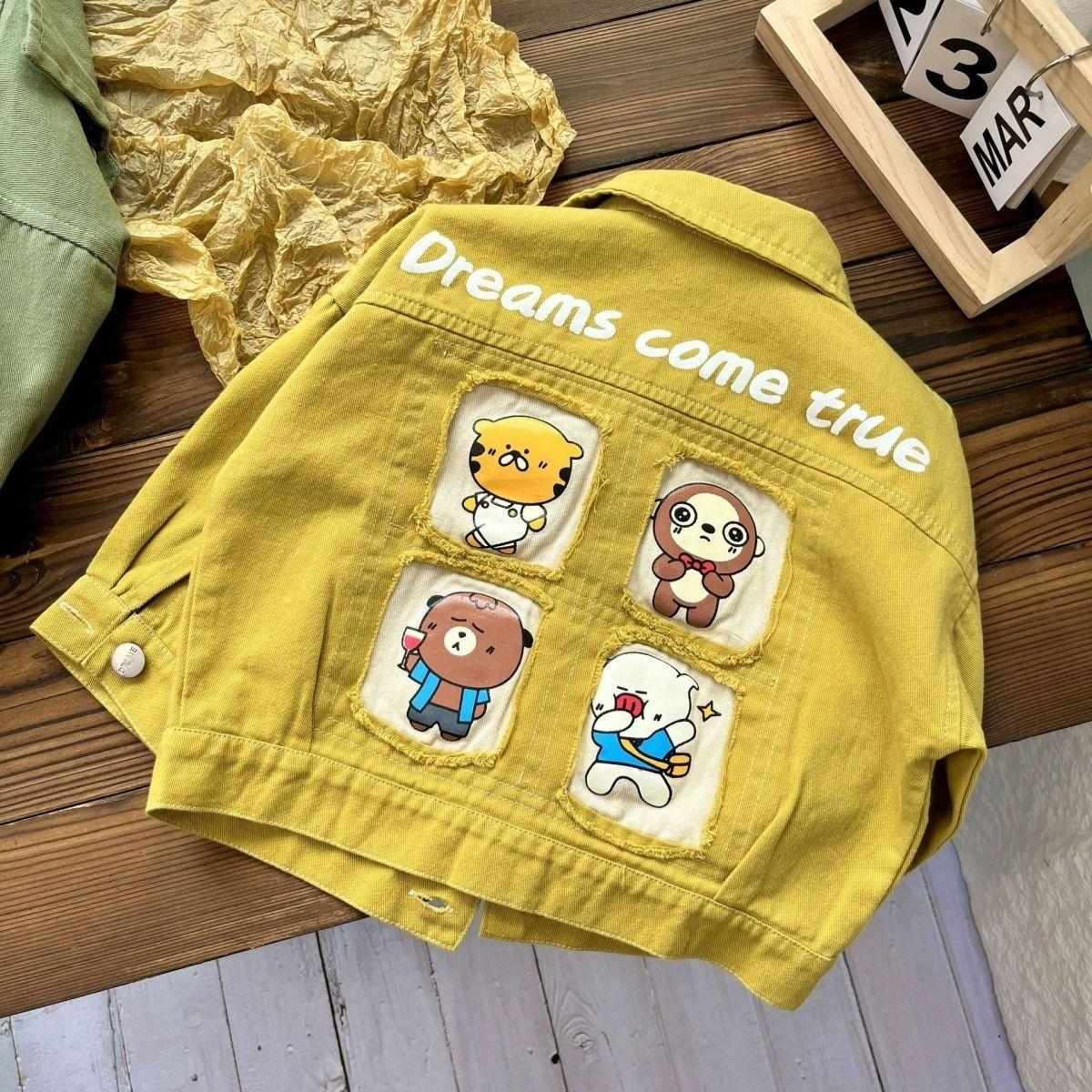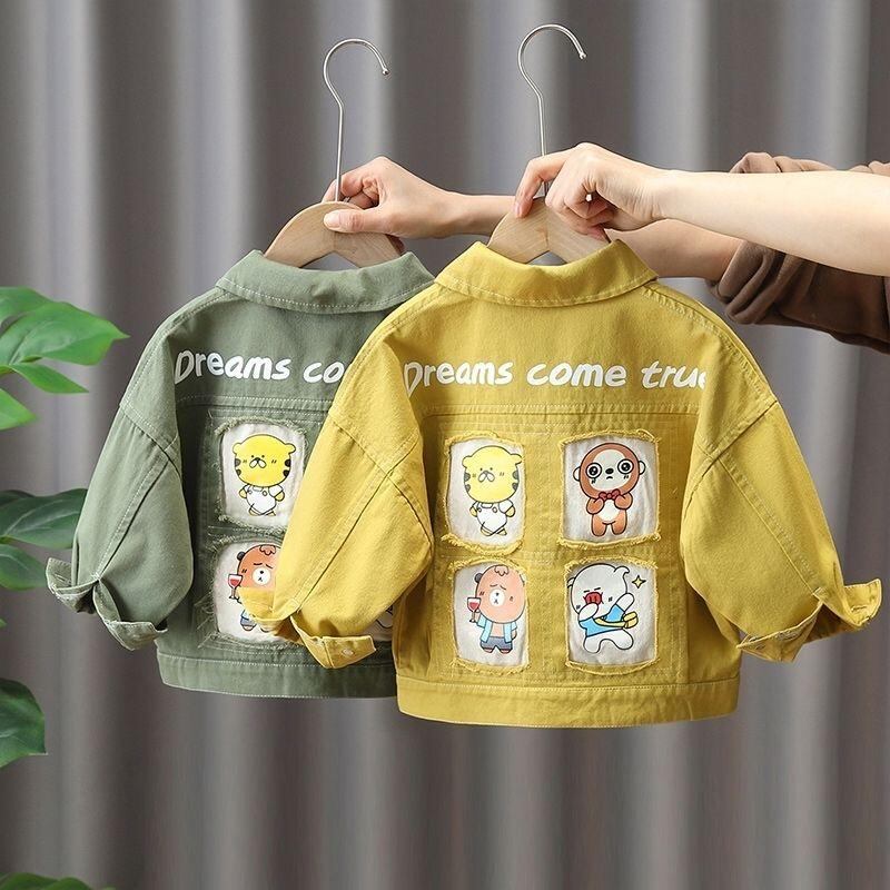キッズ アウター 子供服 デニムジャケット 春秋 男の子 カジュアル 長袖 ミリタリーグリーン オレンジ