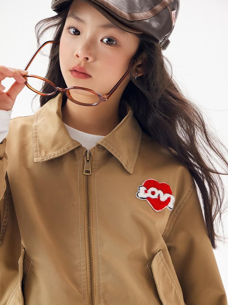 ジャケット キッズ 女の子 子供服 春秋 ブルゾン ジャンパー アウター 120 130 140 150 160 170 カーキ色 普段使い かわいい 潮范 韓国風 ポリエステル