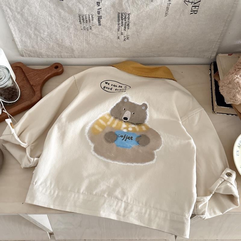キッズ ジャケット 春夏 子供服 ストライプ 薄手 翻襟 かわいい クマ柄 アウター ベビー 男の子 80 90 100 110 120