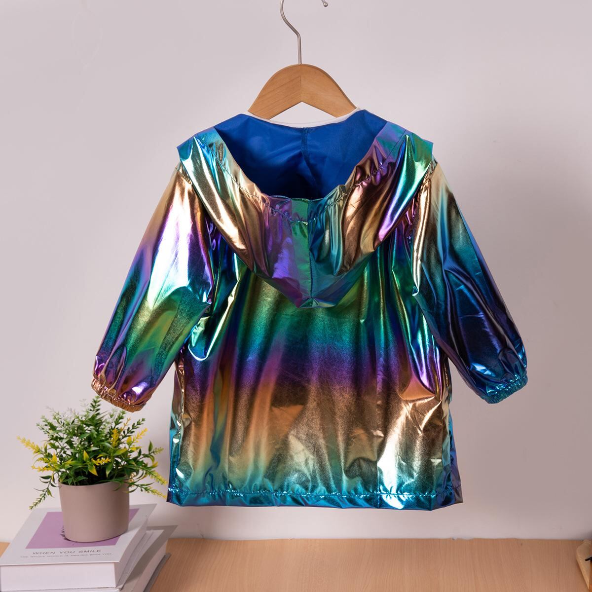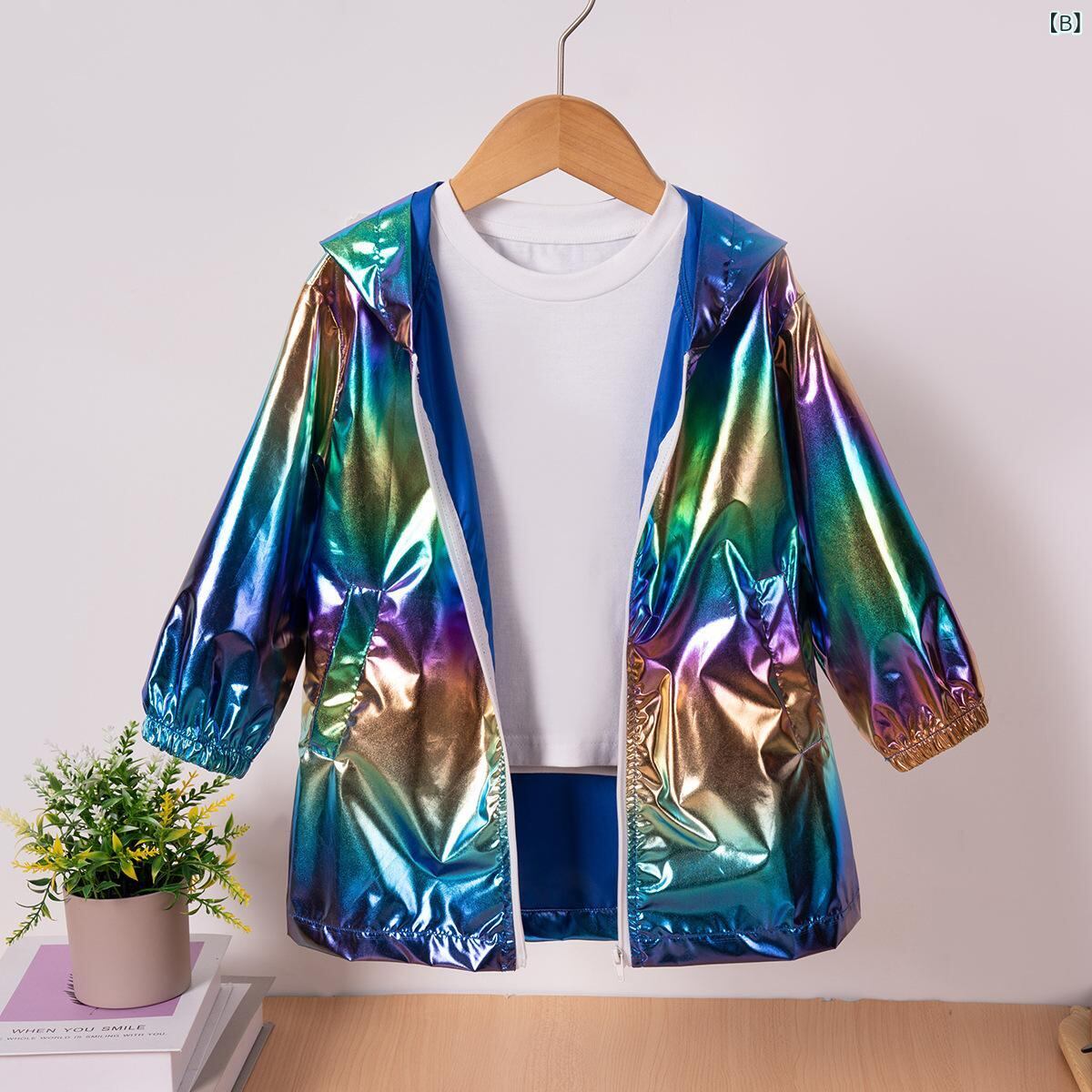 子供服 ジャケット 男女兼用 長袖 アウター 薄手 フード付き ジップアップ カジュアル ロング丈 ポリエステル シルバー 花柄 秋