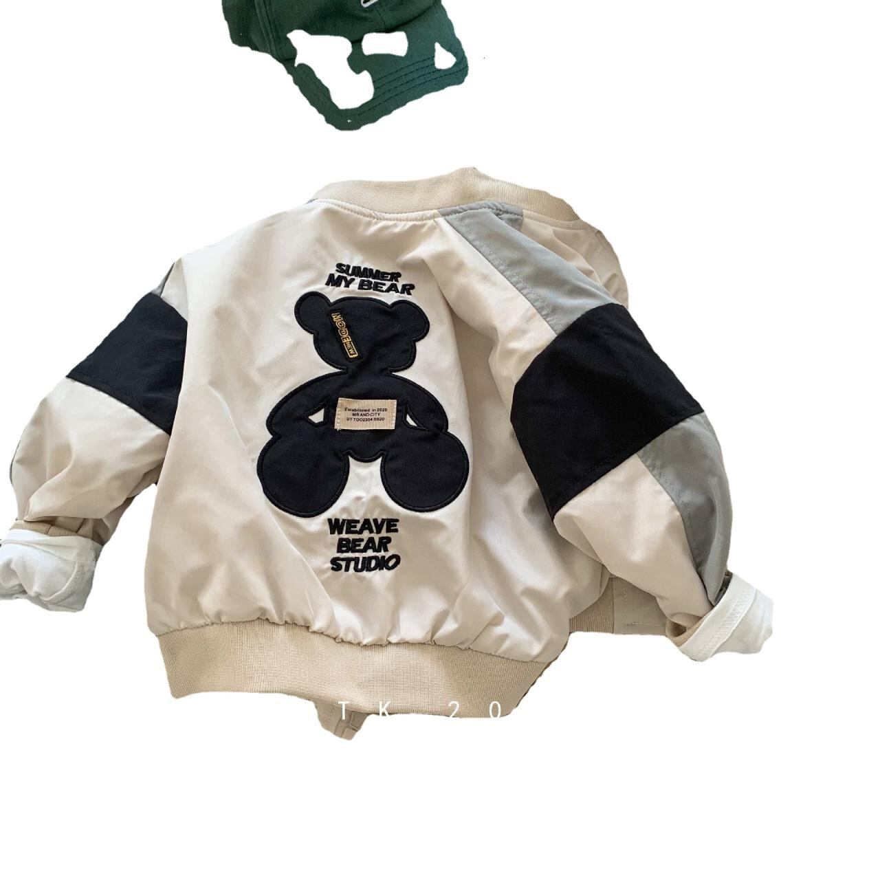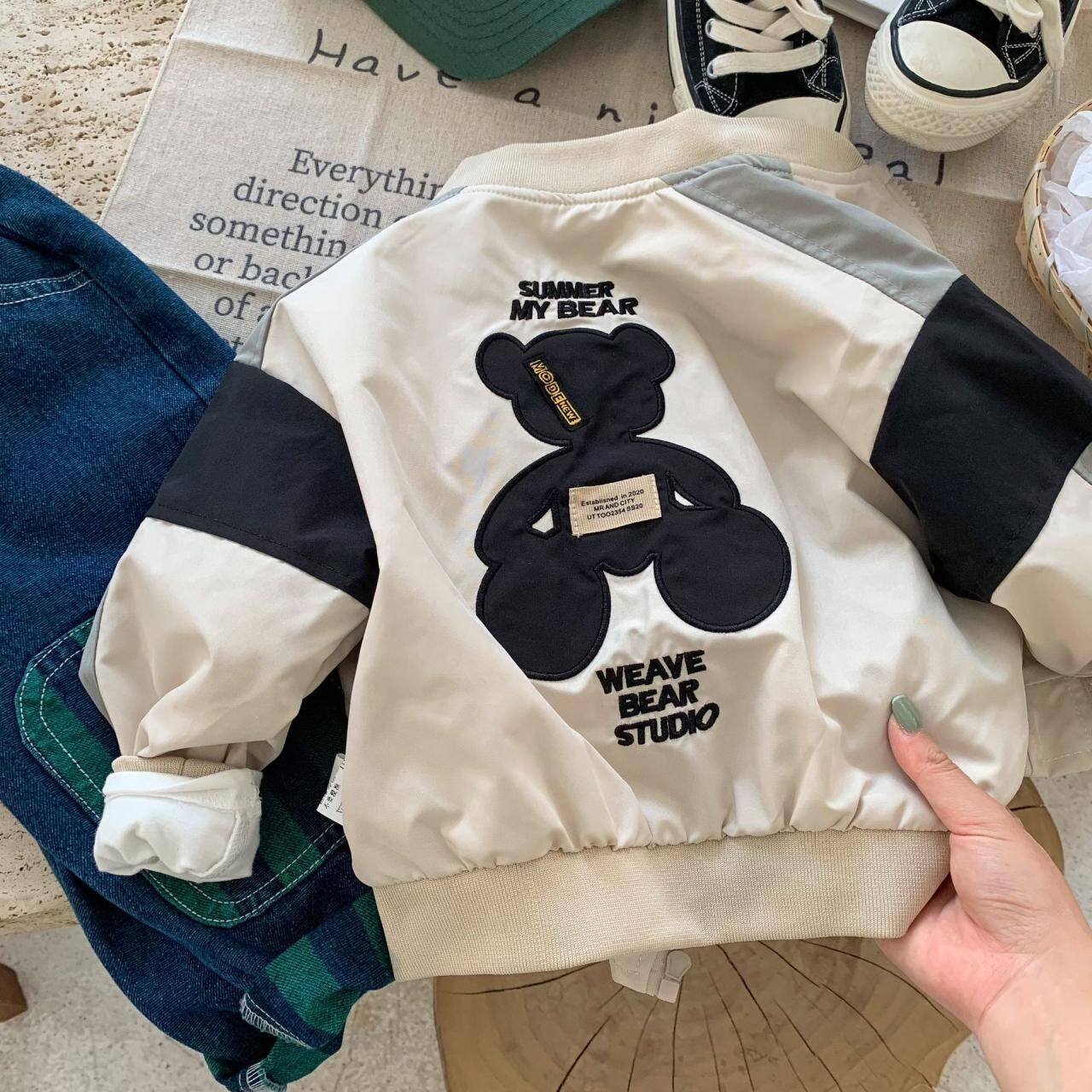 子供服 ジャケット 男の子 カジュアル 小熊 アップリケ 配色 春秋 アウター ボーイズ 幼児 園児 通園