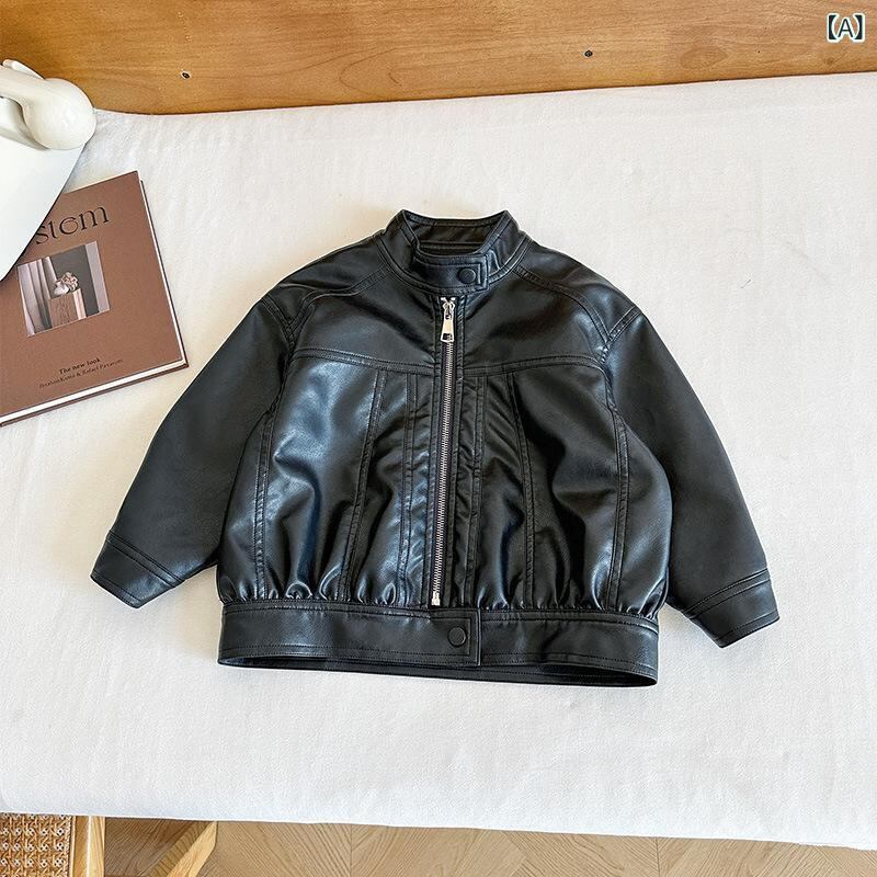 子供服 ジャケット キッズ 男女兼用 レザージャケット スタンドカラー 春秋 男の子 女の子 アウター PU 普段使い 90 100 110 120 130 140 150 ブラック
