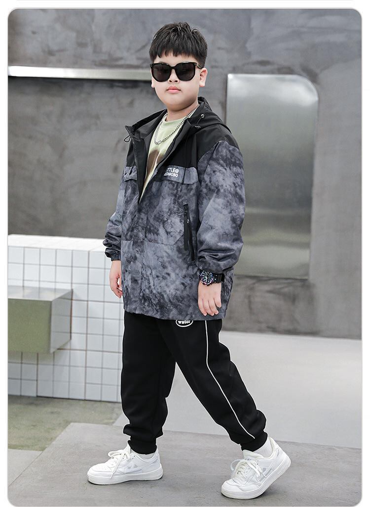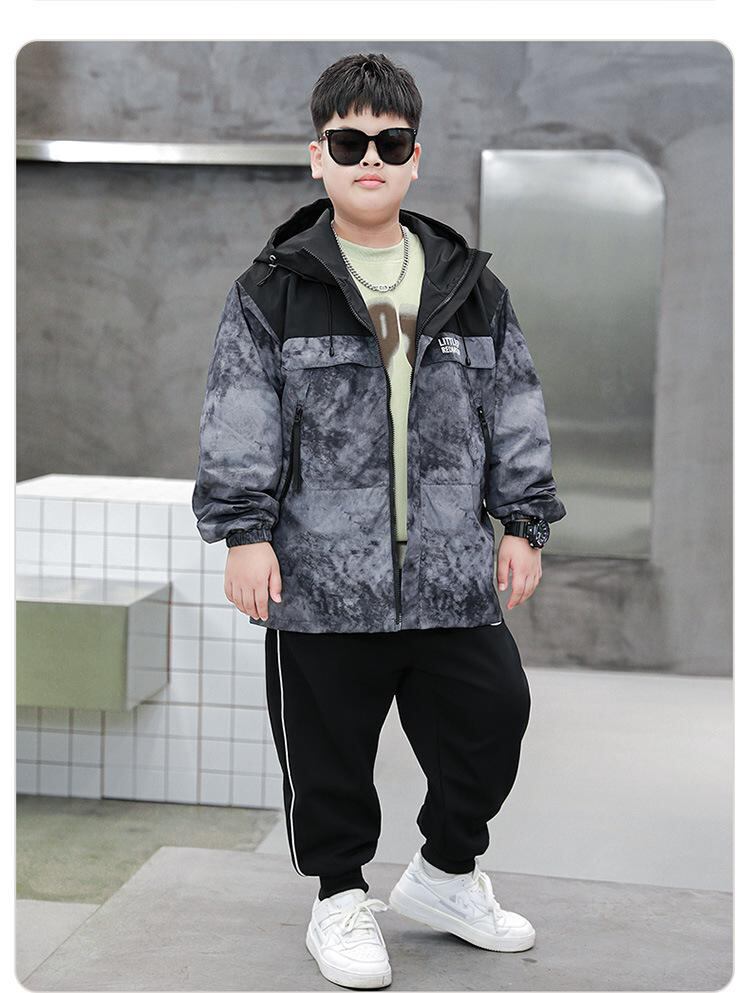 子供服 アウター 男の子 中学生 ジャケット ジャンパー 春秋 大サイズ ゆったり 撥水 防風 フード付き 黒 ブラック グレー バイカラー