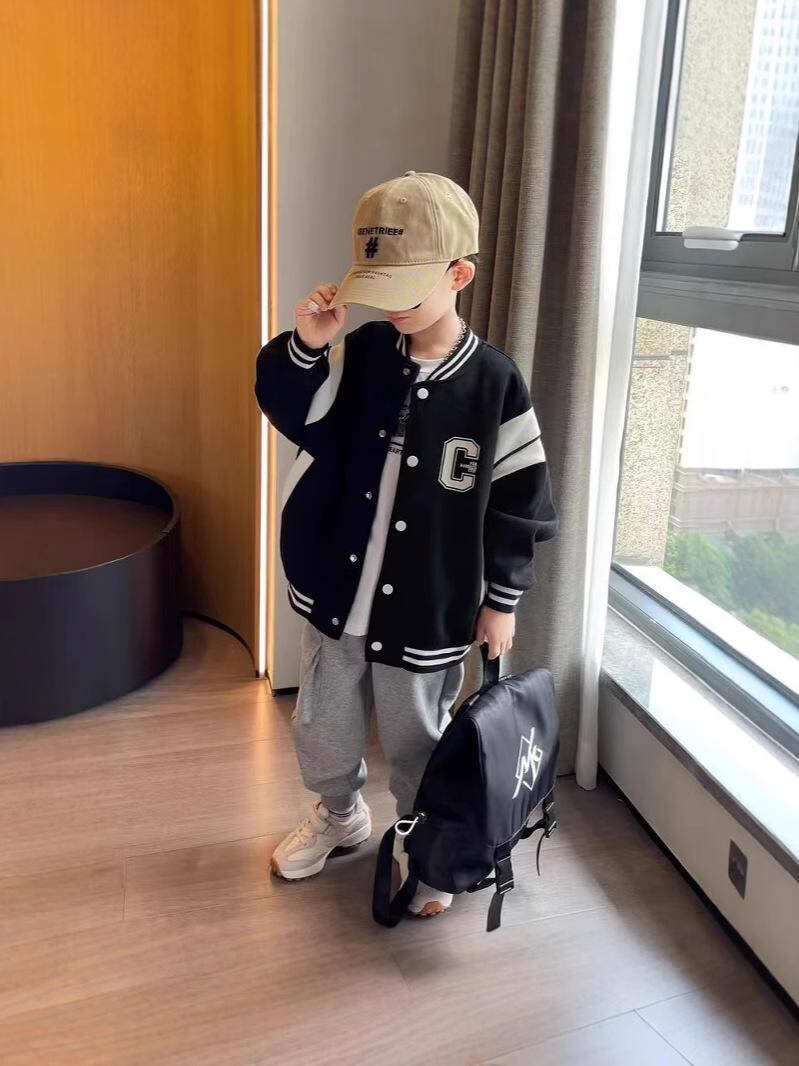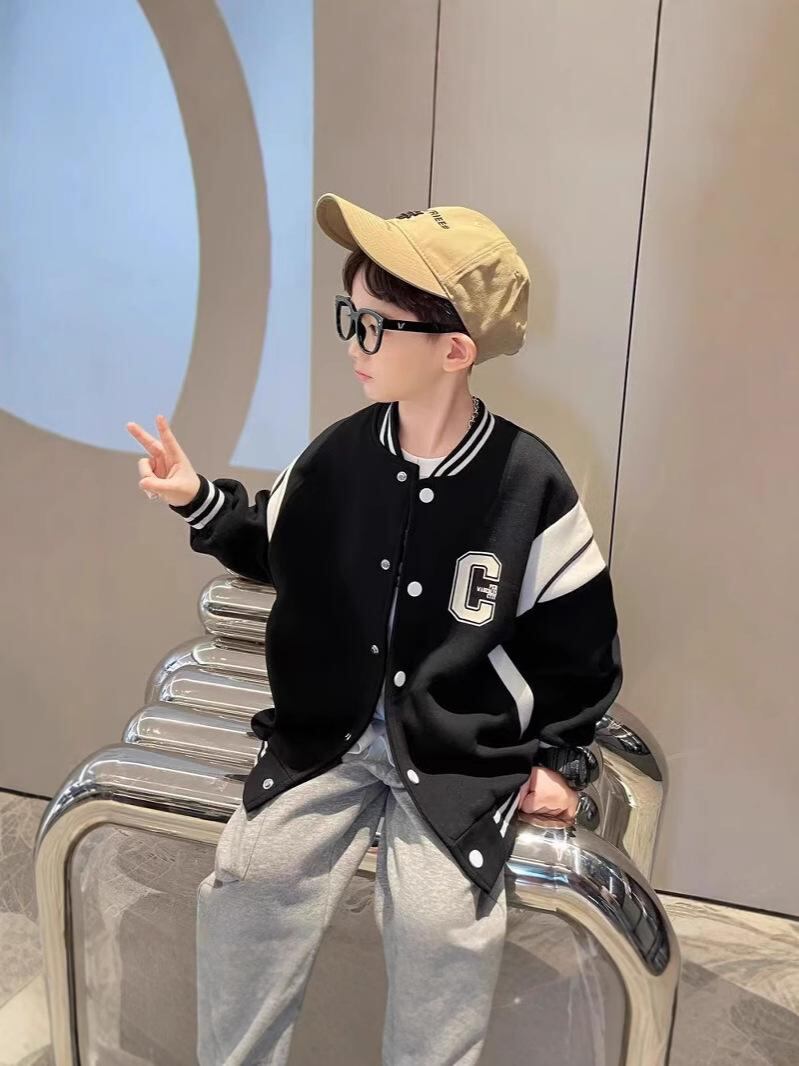 ジャケット キッズ 子供服 春秋 薄手 アウター 男の子 ベースボールジャケット ジャンパー トップス 長袖 120 130 140 150 160 170 ブラック 普段着 通学着