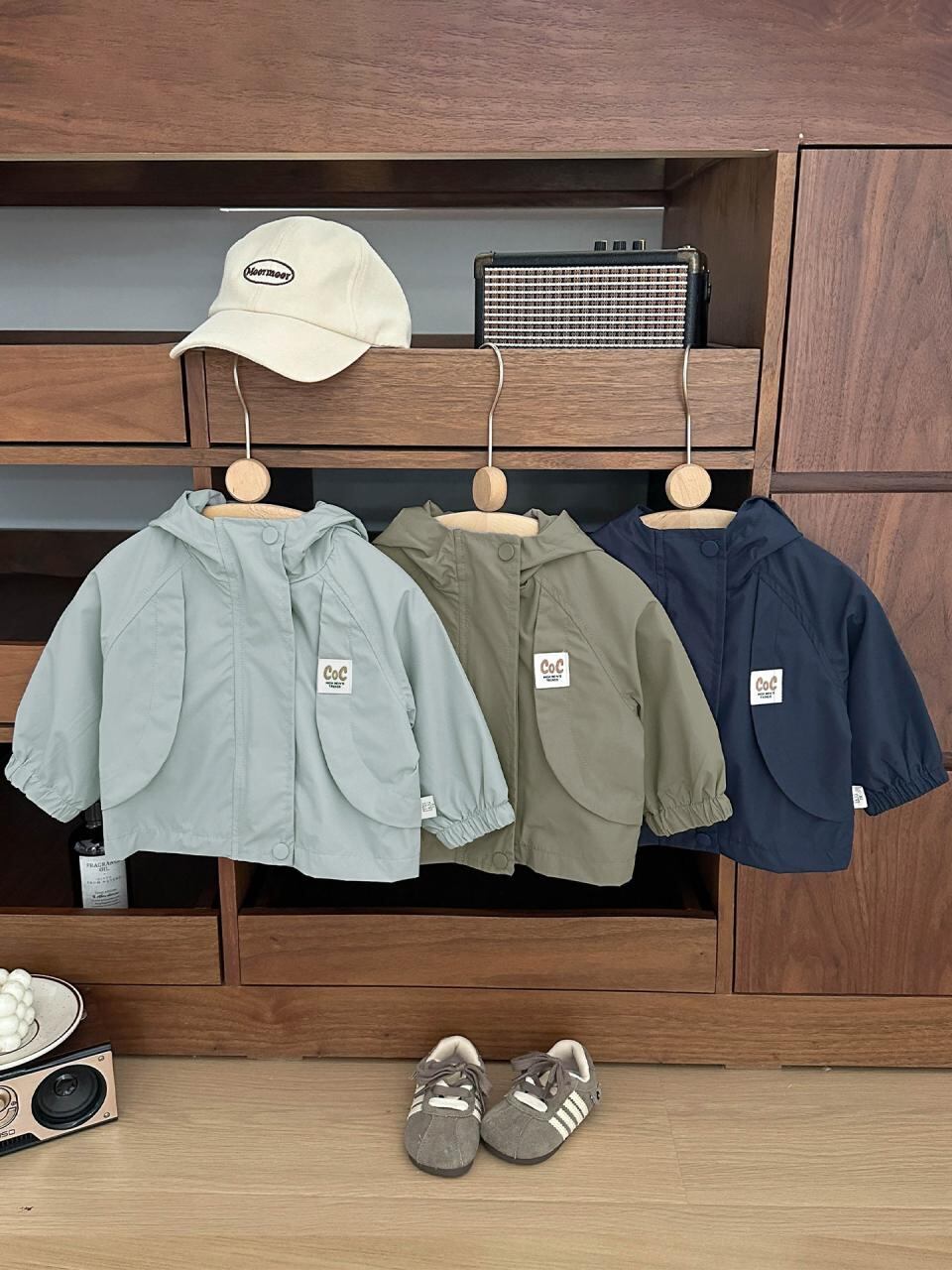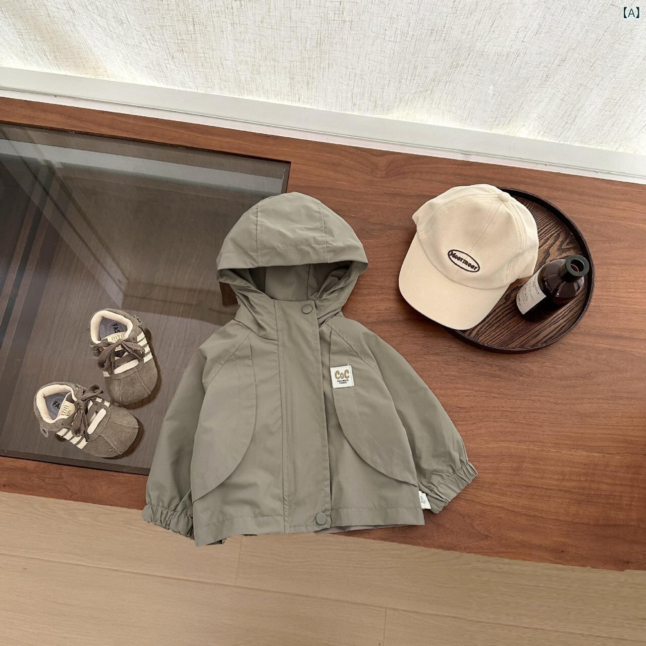 子供服 ジャケット 男の子 春秋 フード付き ウィンドブレーカー アウター 70 80 90 100 カジュアル カーキ グリーン ネイビー