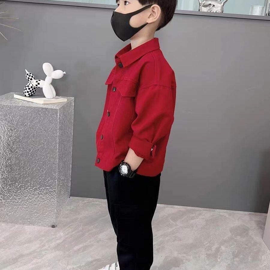 キッズ ジャケット 男の子 長袖 春秋 中長丈 アウター 子供服 ボーイズ カジュアル 赤色 無地 90 100 110 120 130 140 150