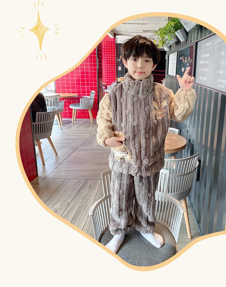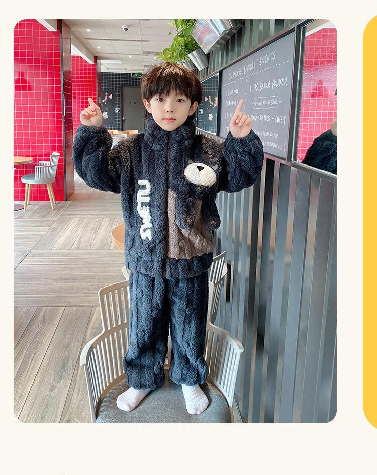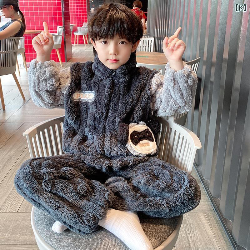 子供用パジャマ 男児向け 厚手 フランネル 珊瑚絨 長袖 上下セット 秋冬 部屋着 ルームウェア 暖か かわいい アニマル柄 男の子 中大 キッズ