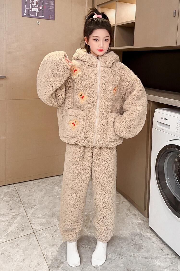 子供用ルームウェア キッズ 冬用 あったか パジャマ 上下セット フランネル 厚手 かわいい クマ耳 フード付き 部屋着 男の子 女の子 120cm 130cm 140cm 150cm 160cm 170cm