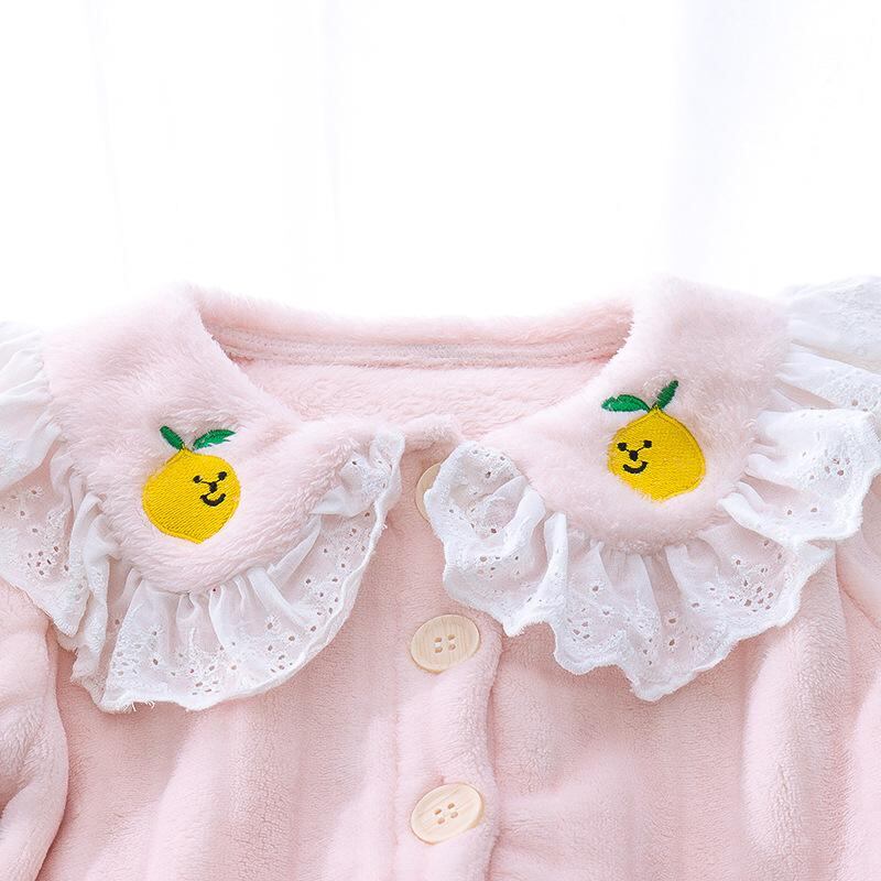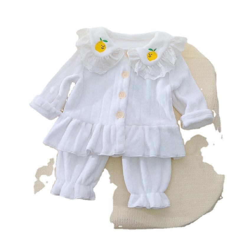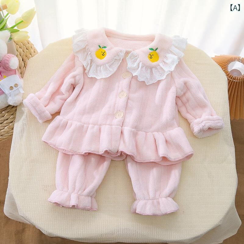 ベビー服 秋冬 パジャマ 上下セット フランネル 女児 花柄 襟付き トップス 長ズボン 厚手 暖かい かわいい 部屋着 ピンク系 ホワイト系
