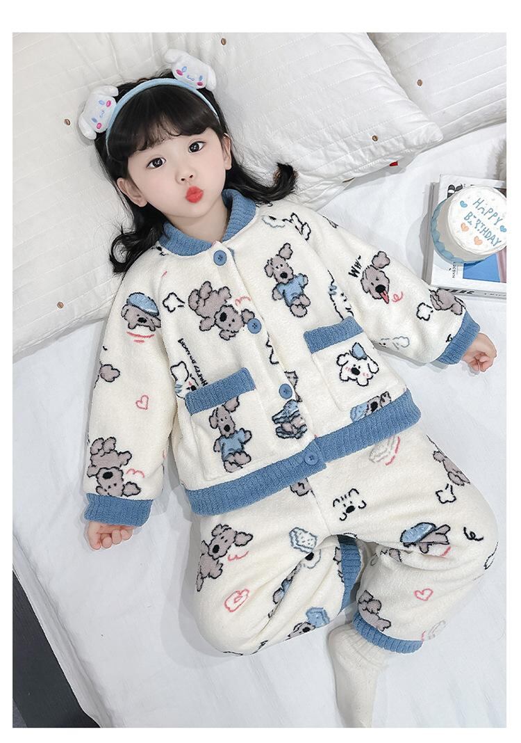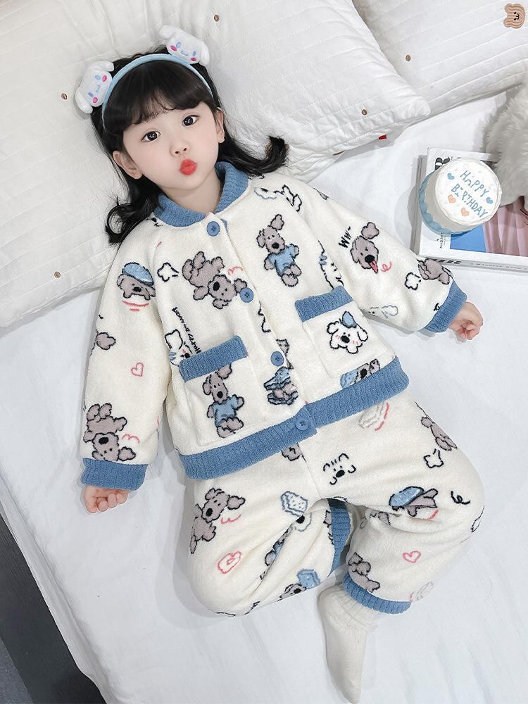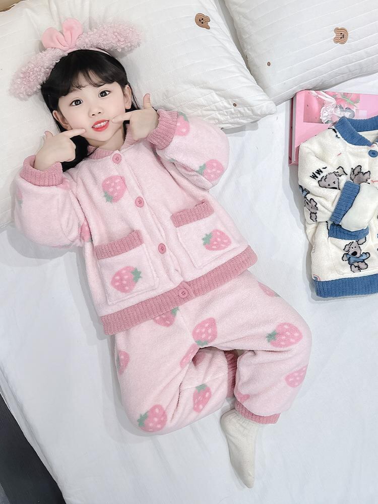 子供用パジャマ 女の子用 冬用 あったか 3層構造 珊瑚フリース 厚手 フランネル ルームウェア 部屋着 かわいい おしゃれ 保温性 90 100 110 120 130 140 ピンク系 ブルー