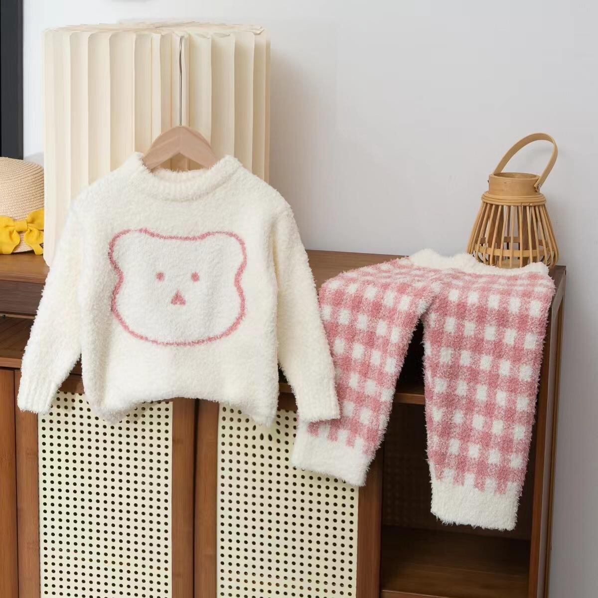 子供用ルームウェア 秋冬 パジャマ 女の子 いちご柄 珊瑚フリース 暖かい 厚手 ニット 中大童 100cm 110cm 120cm 130cm 140cm かわいい