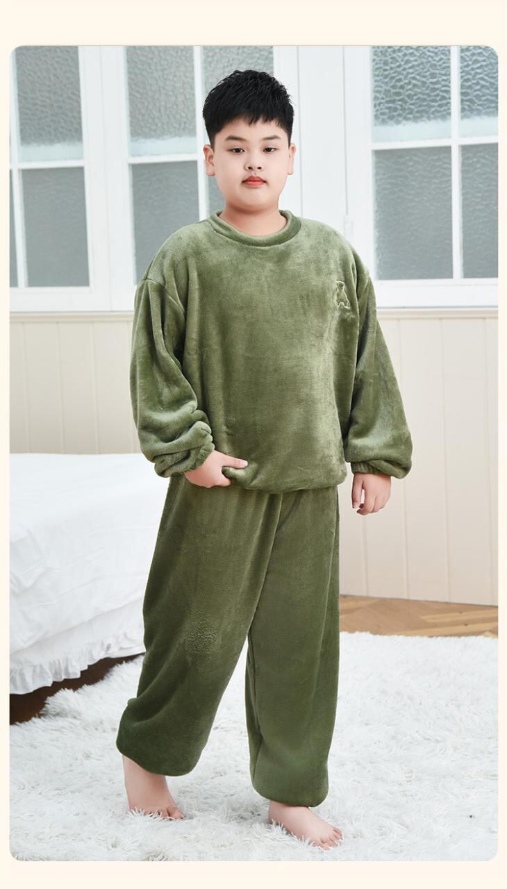 子供用パジャマ 男の子 秋冬 珊瑚フリース 厚手 裏起毛 暖か 中 крупный 子供 ホームウェア 部屋着 カジュアル 140 150 160 170 180 ブルー グリーン